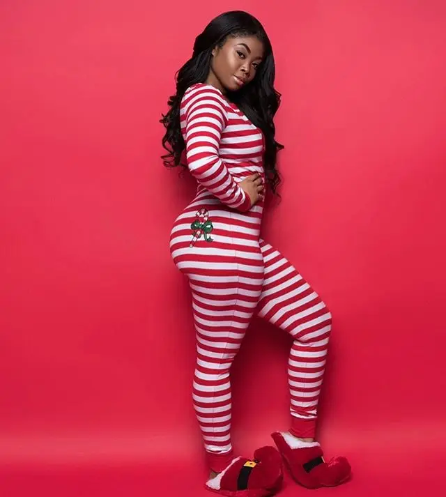 Новинка 2021, стильный женский комбинезон для дома, комбинезон для сна с длинным рукавом, эластичный, в рождественском стиле, домашняя одежда с полосатым принтом