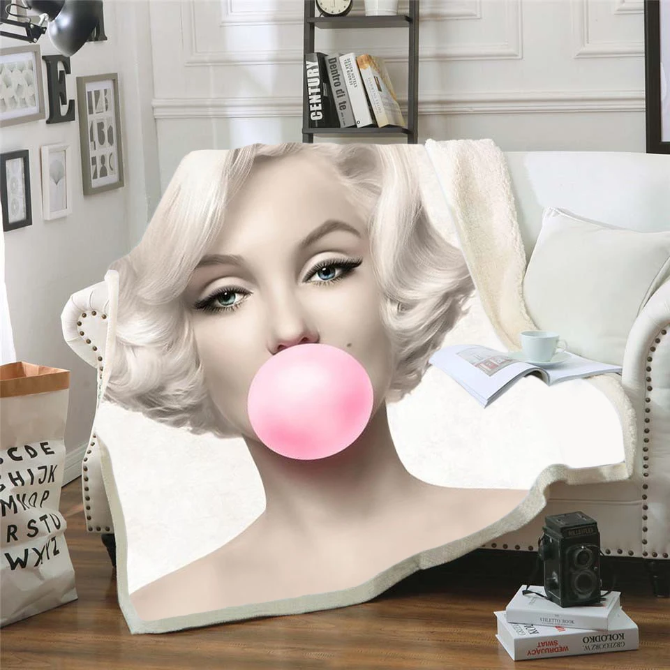 Флисовое одеяло Marilyn Monroe с 3d рисунком, для кровати, походов, пикника, толстое стеганое одеяло, модное покрывало, одеяло в стиле Sherpa-9