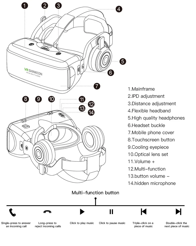 Очки виртуальной реальности VR SHINECON G06E 3D Виртуальная реальность Очки виртуальной реальности VR на головке очки для 4,7-6,53 дюймовых смартфонов с Регулировка межзрачкового расстояния и расстояния до объекта фокусное расстояние настройки, которые позволяют близоруких людей, с тем чтобы четко наслаждаться 3D виртуальный мир. Регулируемые и гибкие повязки на голову зеркала для 3D очков VR SHINECON Кнопка коробки принимает дизайн переключателя адсорбции, удобный и прочный дизайн эластичной ленты, И линзы 3D очков, которые удобно носить на голове, уменьшают воздействие на частицы, то есть использование большого экрана оптимизирует VR