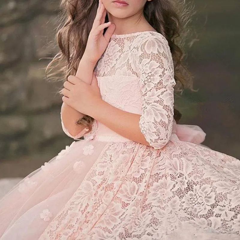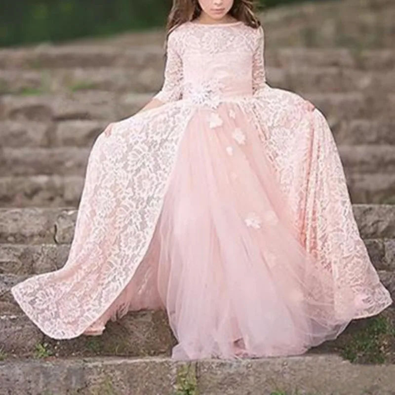 Настоящее изображение; Розовые Платья с цветочным узором для девочек; Для свадебной вечеринки; Длина до пола; Платье принцессы с открытой спиной; Платье Юниор; Платье подружки невесты для девочек