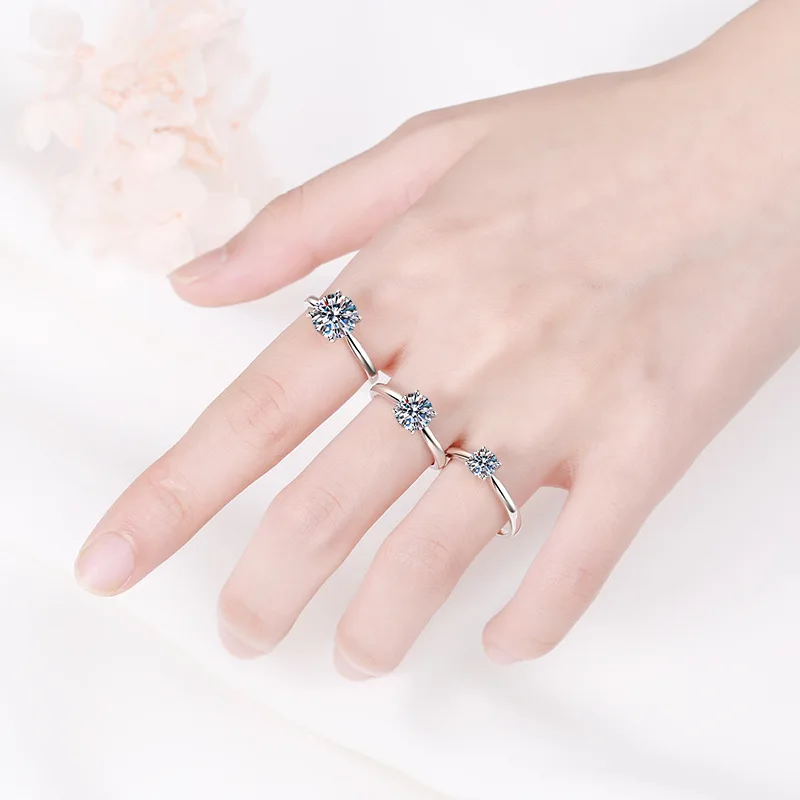 Кольцо женское из серебра 925 пробы, с муассанитом 1-2 карата