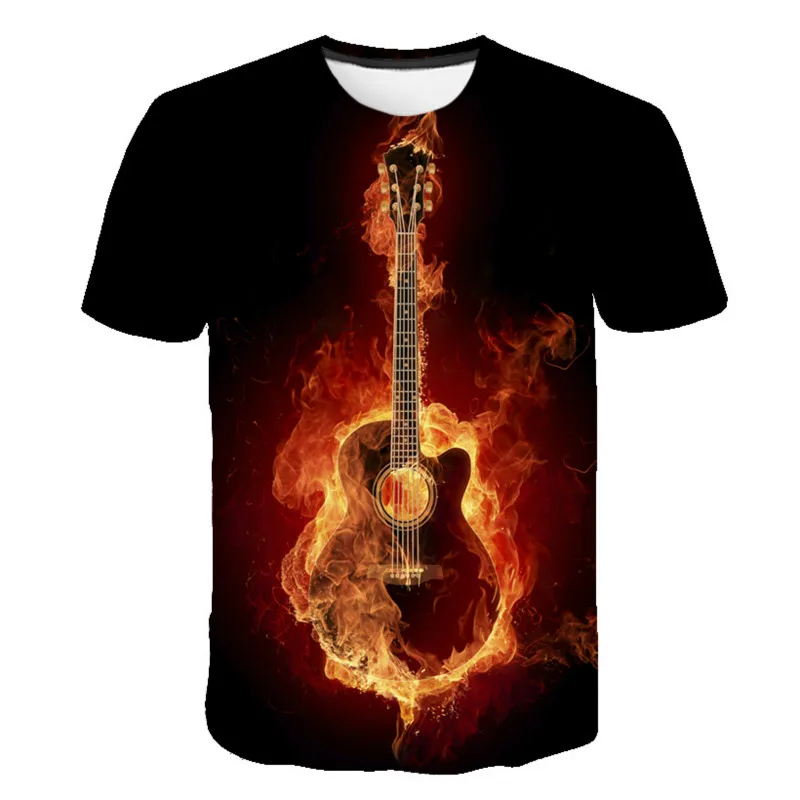 Горячая Распродажа 2021, летняя футболка с 3D принтом гитары, мужск...