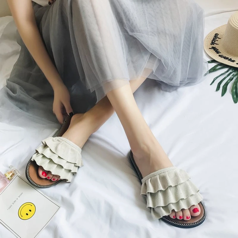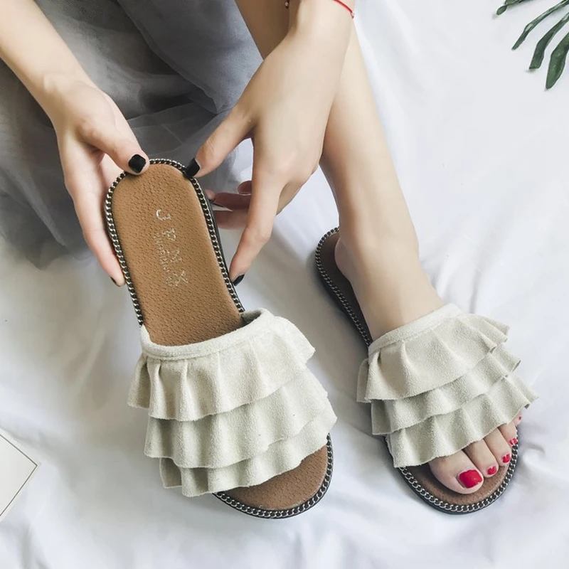 Женские сандалии, женские шлепанцы, верхняя одежда, Новинка лета 2020, универсальные кружевные шлепанцы на плоской подошве, сандалии и аксессуары