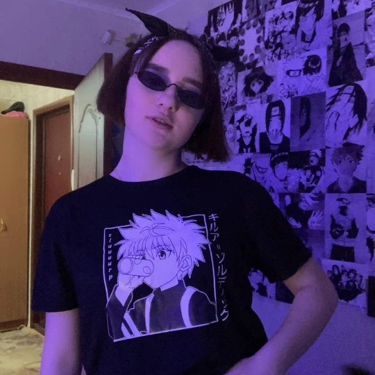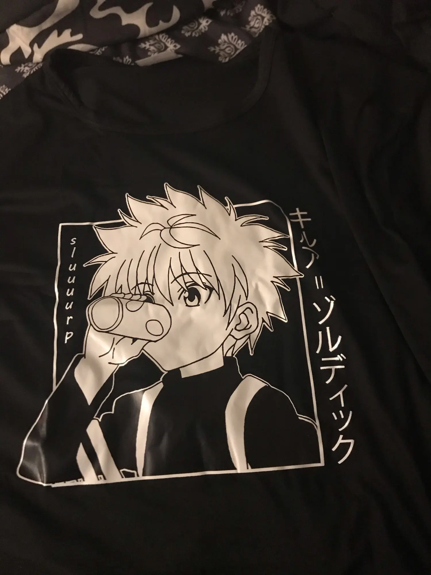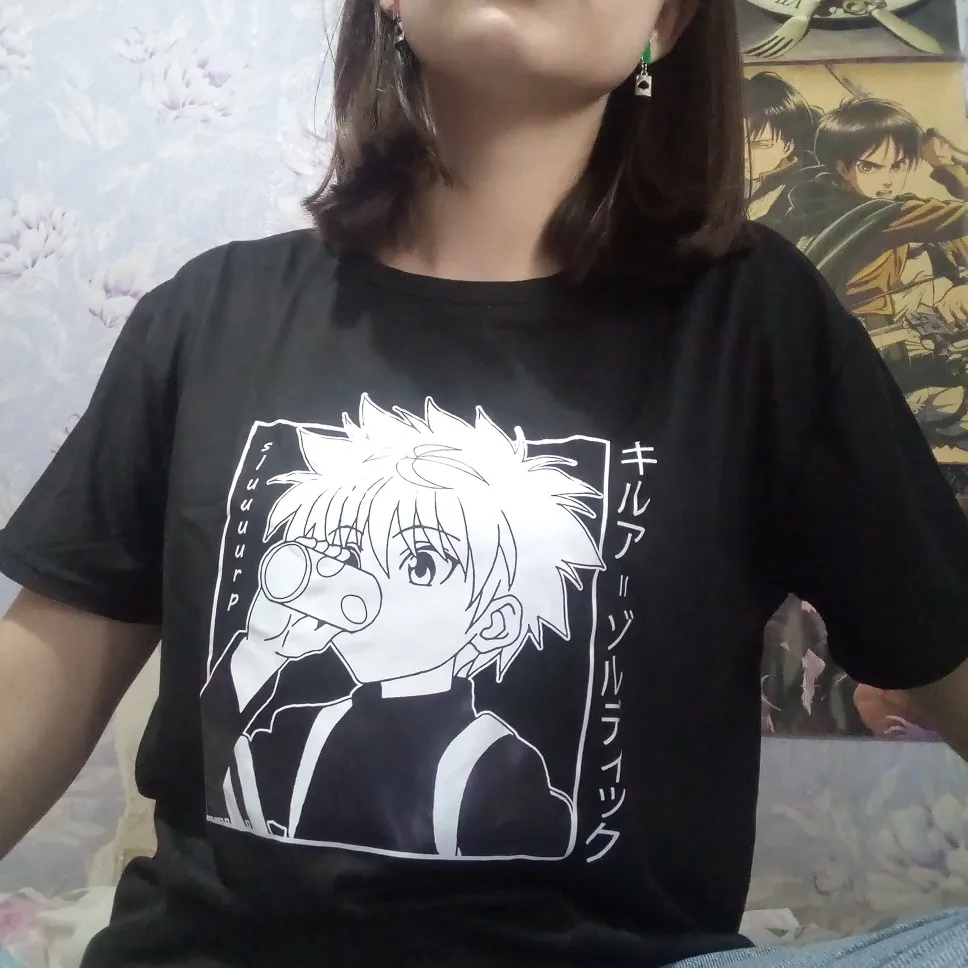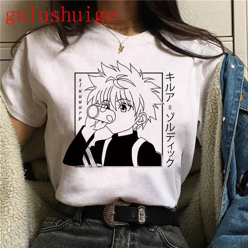Футболка Kawaii Hunter X Hunter Мужская, смешные топы, графические футболки Hisoka MOROW, Харадзюку, унисекс, аниме Killua Zoldyck, мужская рубашка
