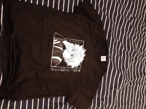 Футболка шикос. Материал мне не привычный, но устраивает. Печать наклейкой, так что я подозреваю что когда-нибудь принят отвалится, но пока по наблюдениям всё четенько. Размер брала на один больше своего и меня устраивает, если бы взяла свой было бы в обтяг. Короче теперь буду светить этим милым мальчиком на улице и устрашать врагов