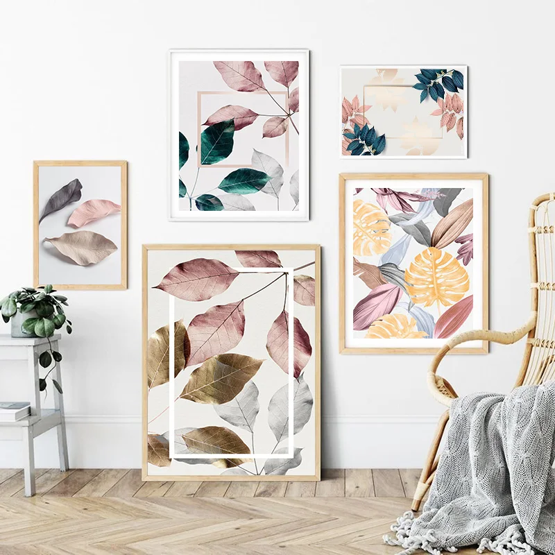 Тропические растения зеленые розовые листья, холст, живопись, Скандинавская стена, стандартные картины для декора гостиной