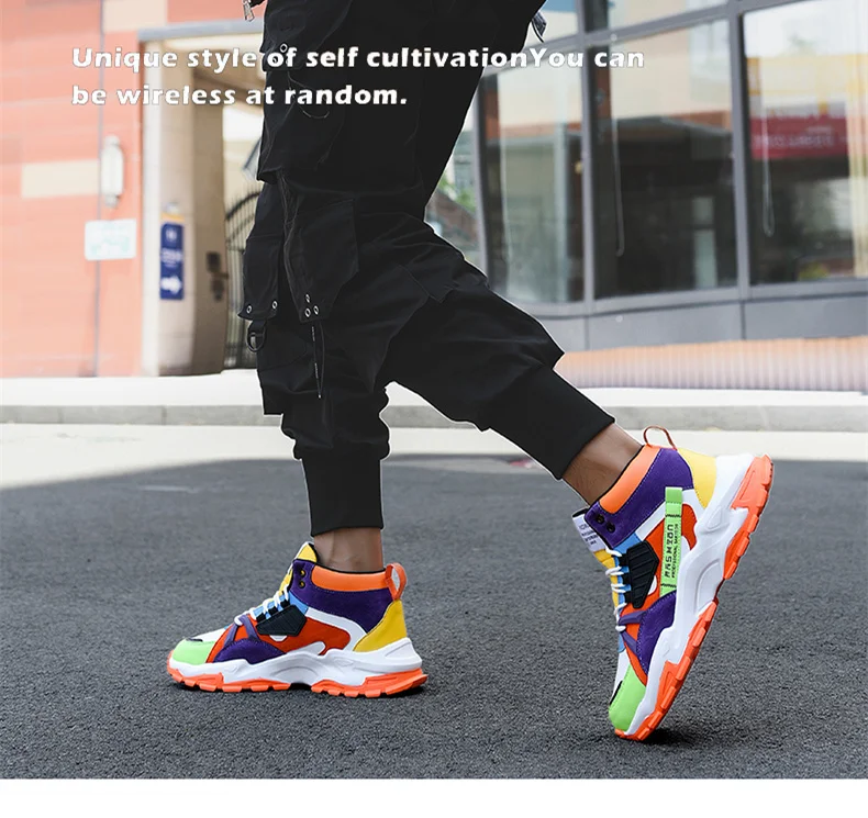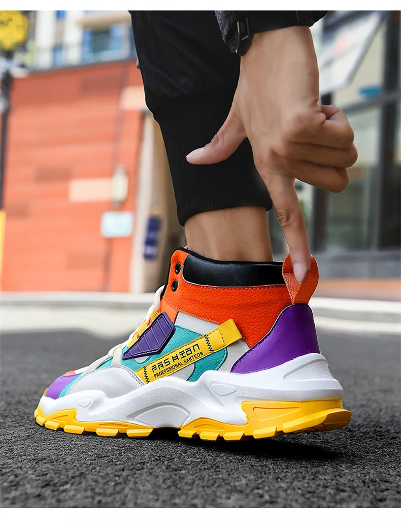 Модные высокие мужские кроссовки на шнуровке, осень Дизайнерские мужские ботинки, дышащие красочные спортивные кроссовки, обувь Zapatillas Hombre