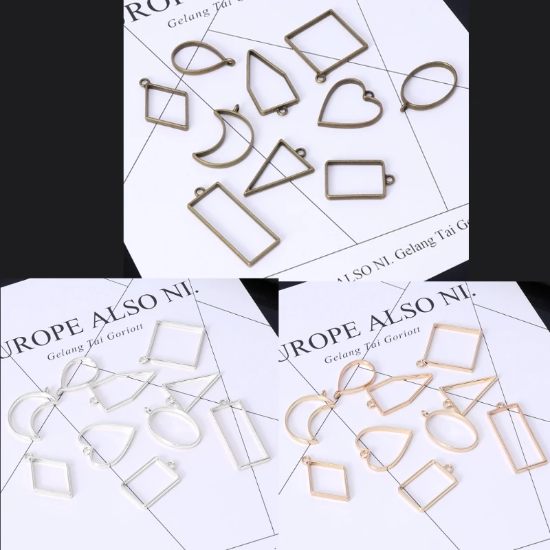 10 шт Ассорти геометрический полый прессованный цветок рамка кулон Смола Ювелирный инструмент металлическая рамка ювелирные изделия Подвески рамка Установка