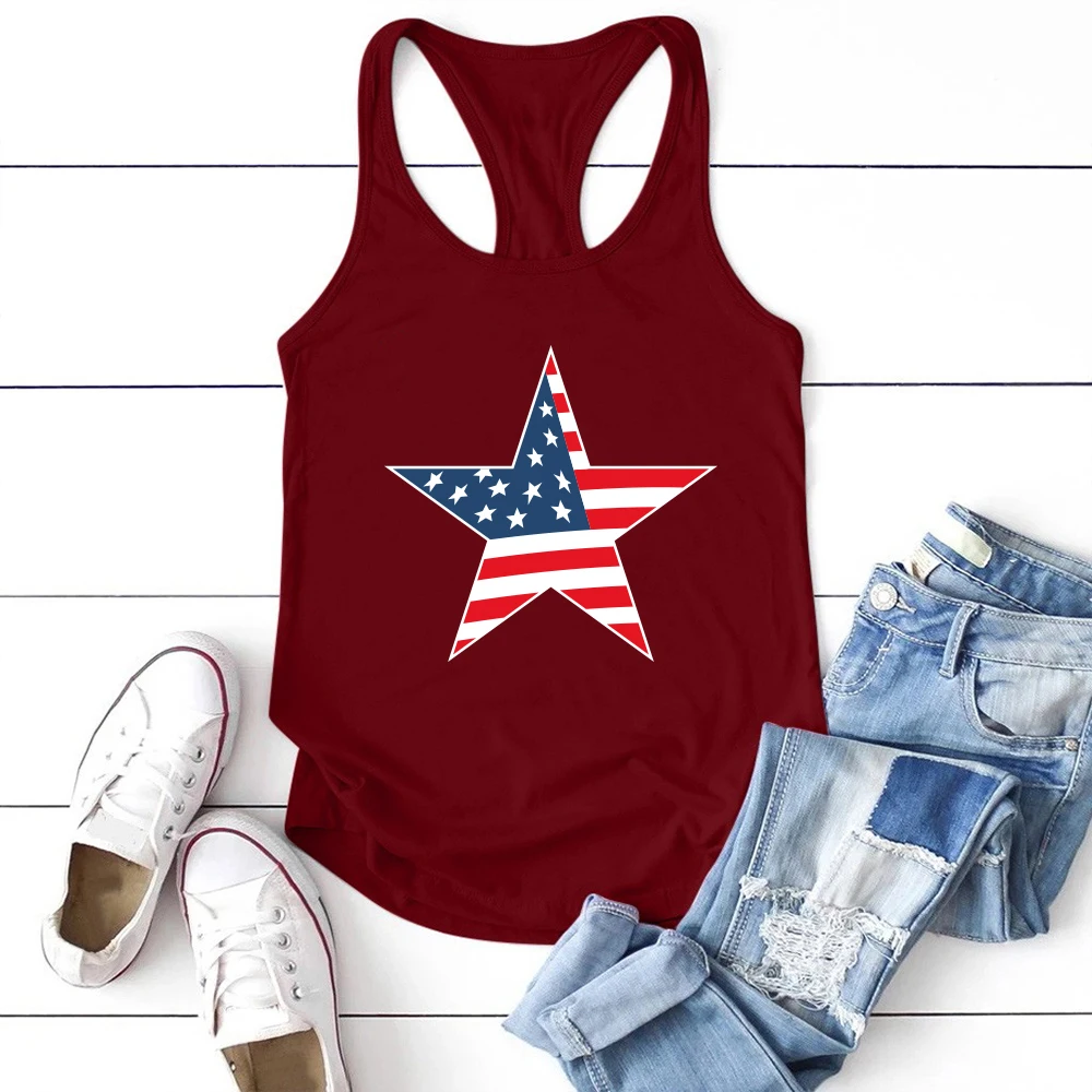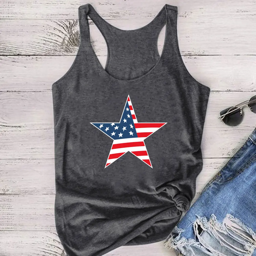 2020 Повседневная Женская майка со звездами в американском стиле, Летний жилет без рукавов, графические топы с круглым вырезом для женщин