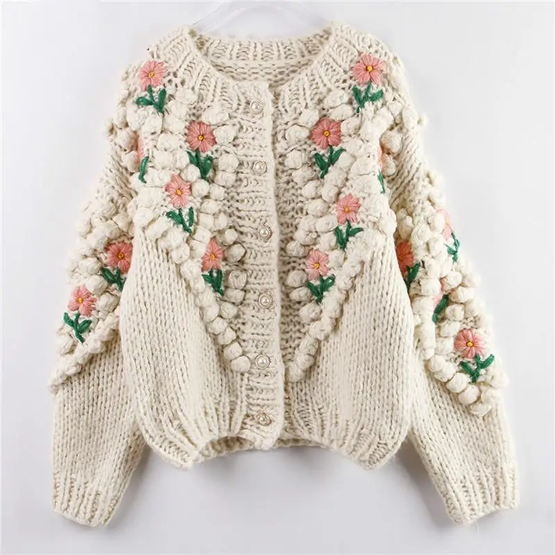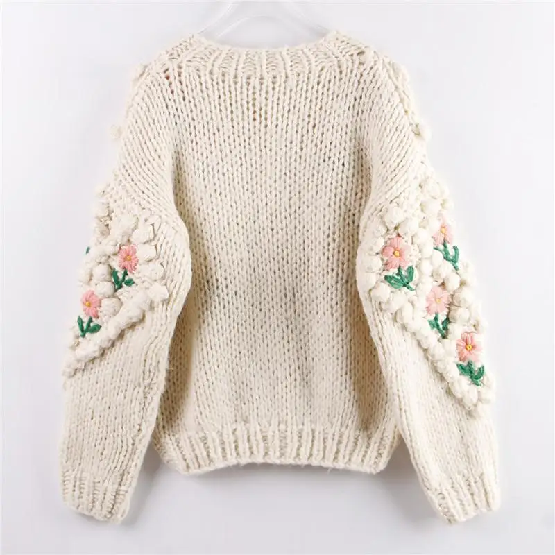 Кофта женская вязаная с жемчужинами и цветочной вышивкой, ZITY, зима 2020