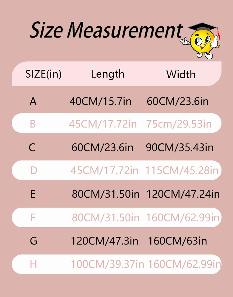 Таблица размеров предназначена только для справки. Для конкретного размера ковра по ссылке, Пожалуйста, разместите заказ в соответствии с имеющимися вариантами. Если вам нужно настроить размер, пожалуйста, свяжитесь со службой поддержки клиентов.