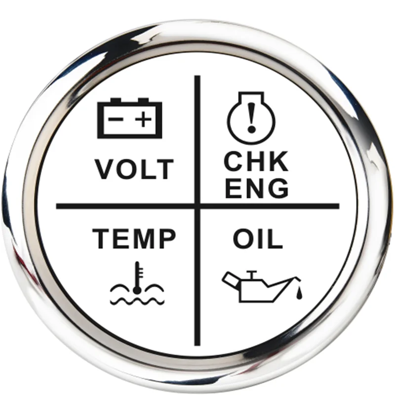 Водонепроницаемый манометр 52 мм, напряжениедавление маслатемпература водыПроверка двигателя 4 Светодиодный индикатор сигнала тревоги, подходит для морской лодки, автомобиля 12 24 В