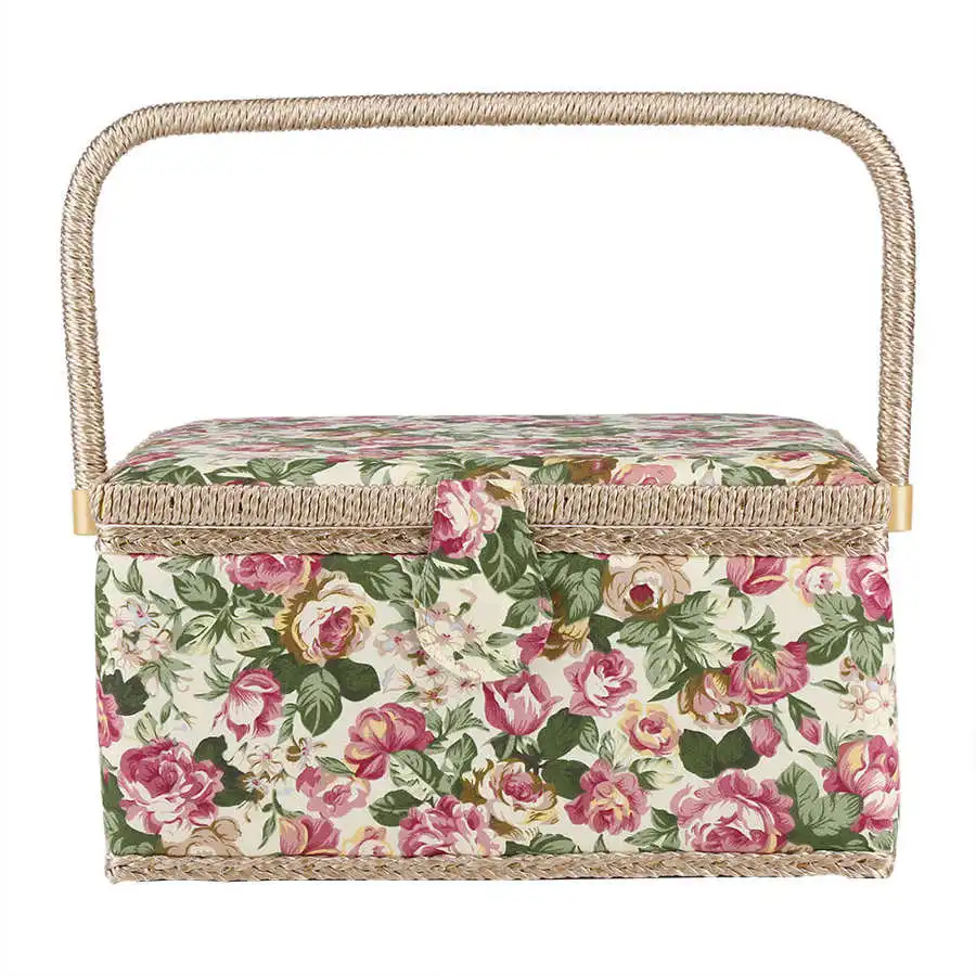 Швейная домашняя корзина для хранения с цветочным принтом и ручкой