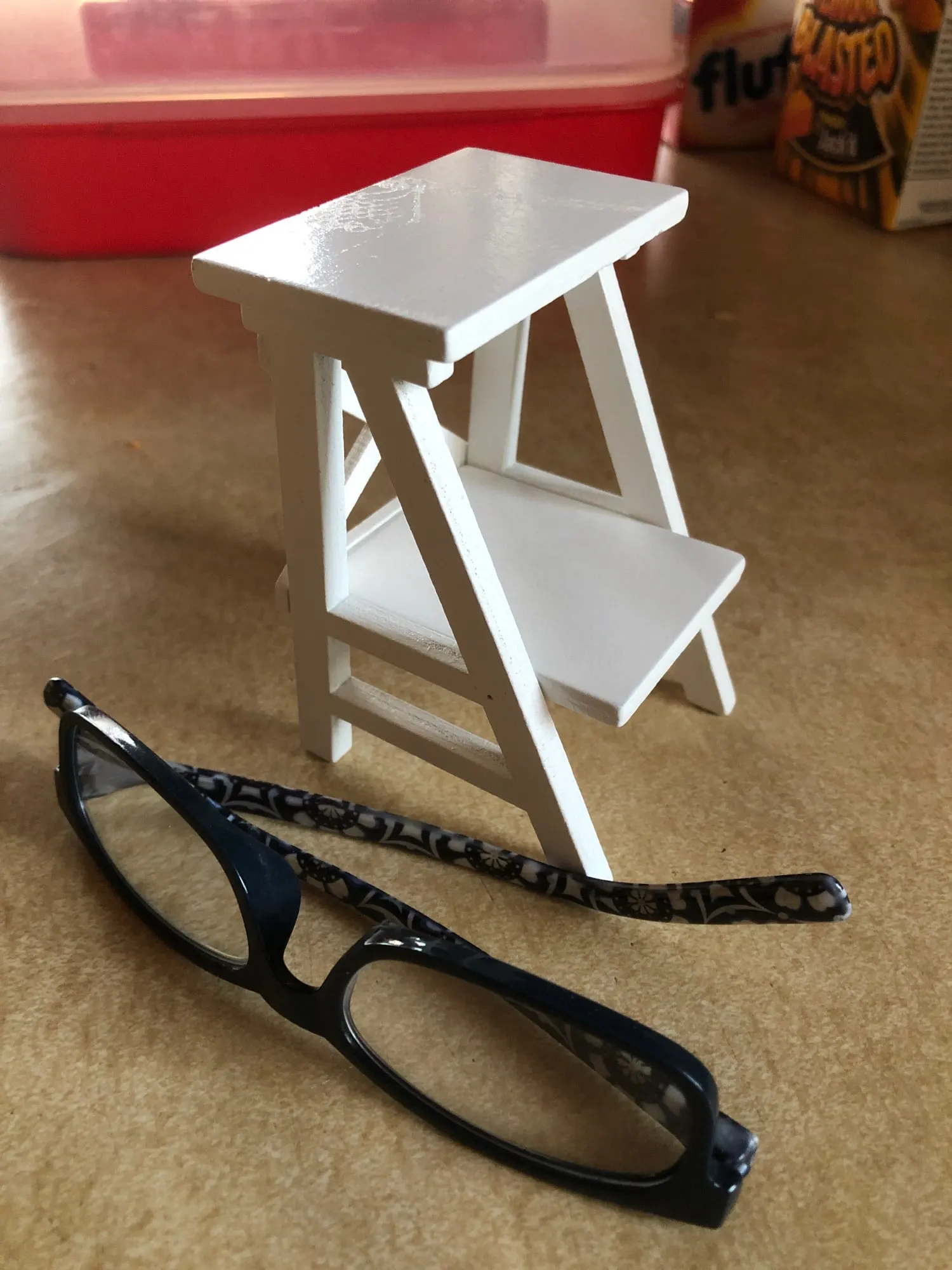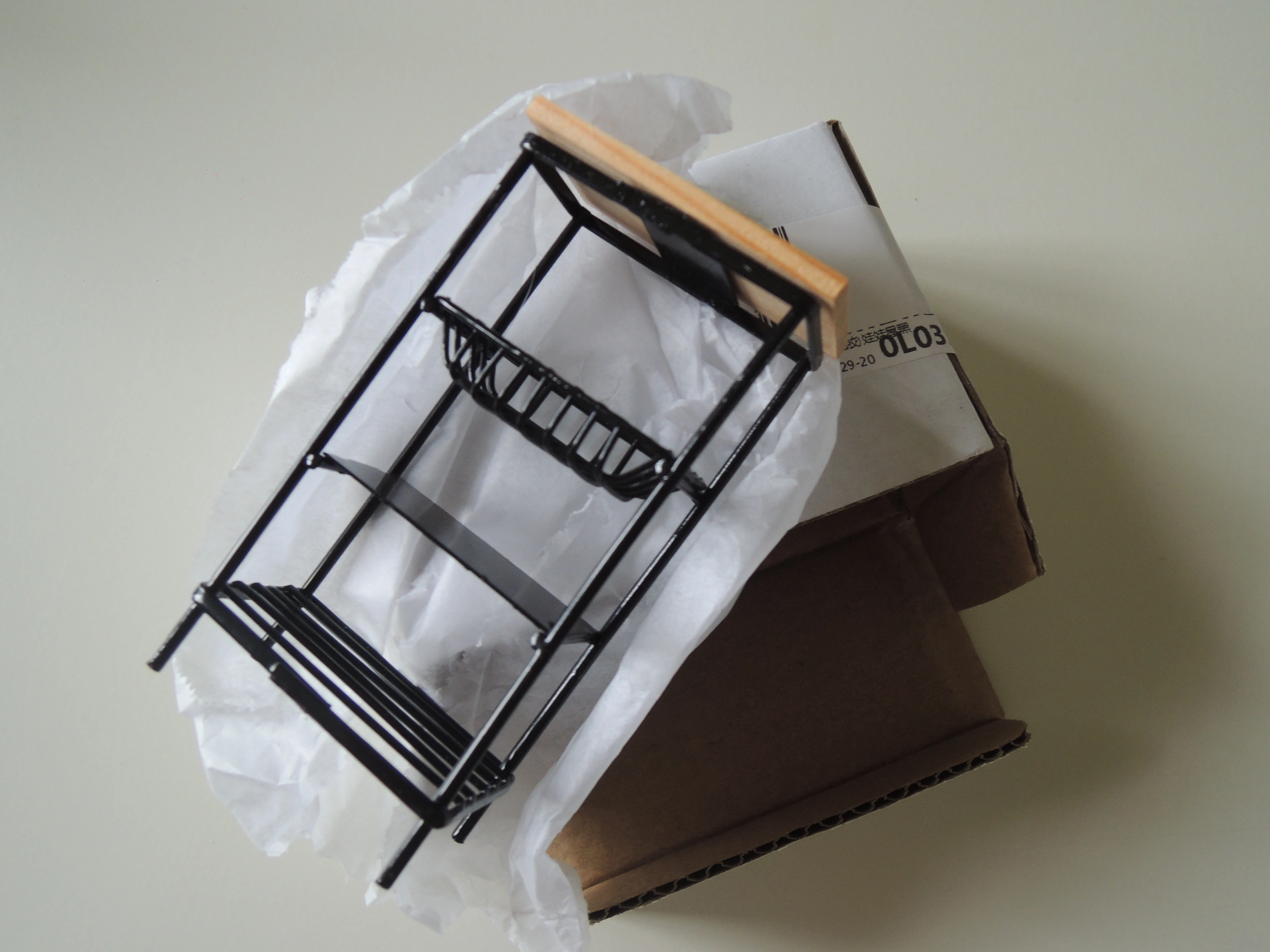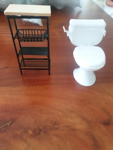 этажерка-табуретка приехала в целости, что удивило немного, т.к. упаковано было в тонкую коробку, красивая качественная, по размеру это не масштаб 1:12, а 1:6 размер для кукол типа Барби, но вещица классная, можно посадить на неё куклу, а можно поставить на неё цветы книги например