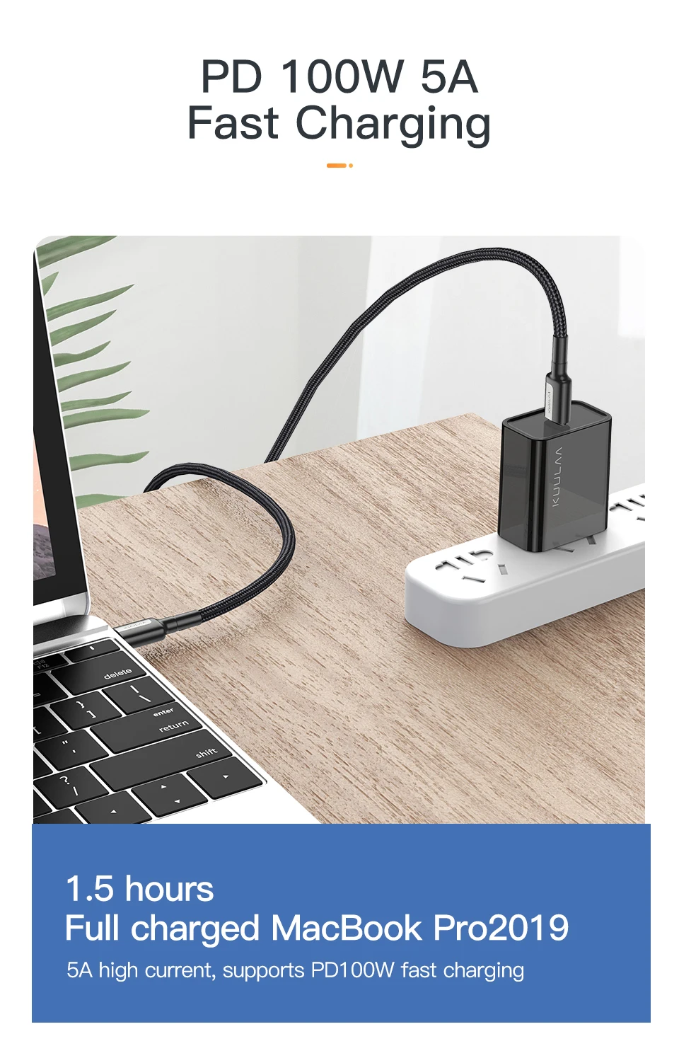 Кабель KUULAA USB C к Type C для Macbook Pro 5A PD 100 Вт USB 3,1 G...