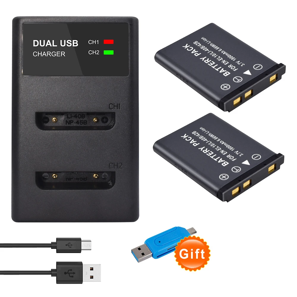 Оригинал 3,7 V EN-EL10 EN EL10 Li-40B Li40B цифровые аккумуляторные батареи + LED dual USB зарядное устройство для Olympus Nikon Fujifilm Kodak