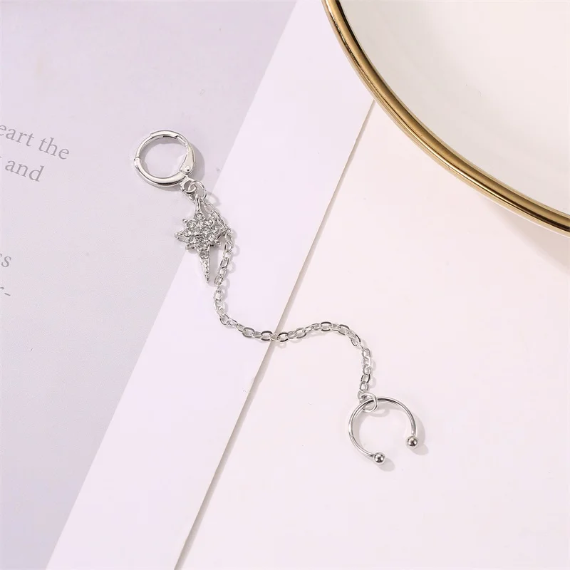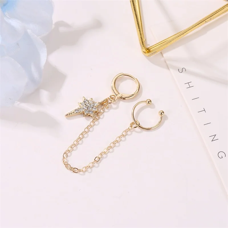 C-образные белые стразы, цепочка с кисточками и звездочками, позолоченные медные серьги-клипсы для ушей