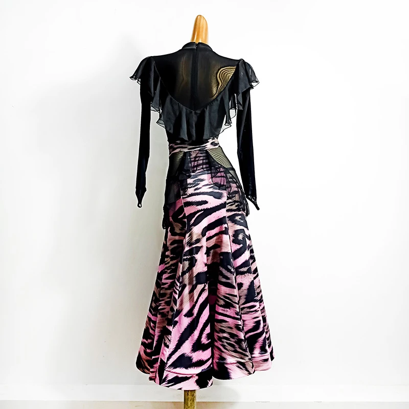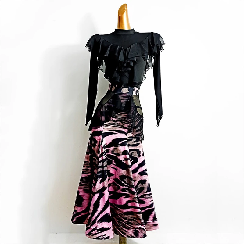 Новое Бальное Платье латино юбка для танцев Для женщин розового цвета, леопардовая расцветка, пикантная обувь из сетчатого материала с кисточками и складками для бальных танцев костюм практика VDB2298