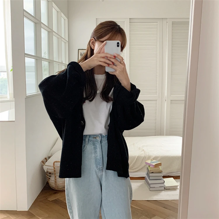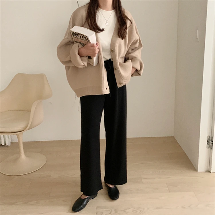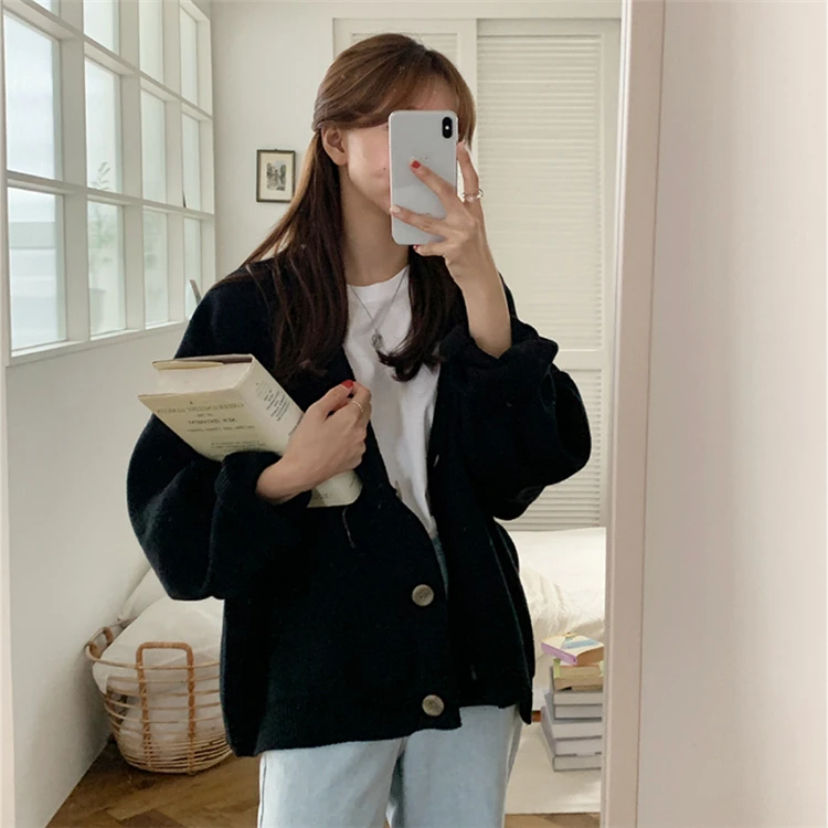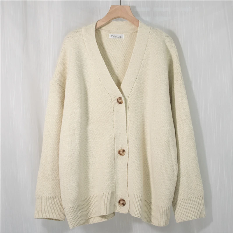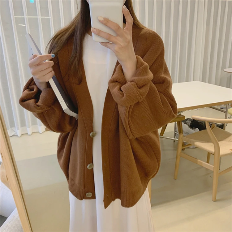 Свитер женский трикотажный с V-образным вырезом на пуговицах, на зиму и весну, SWC18190, 2021