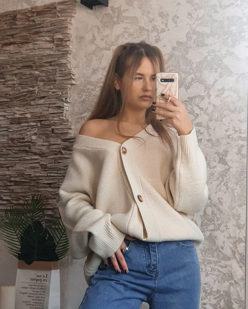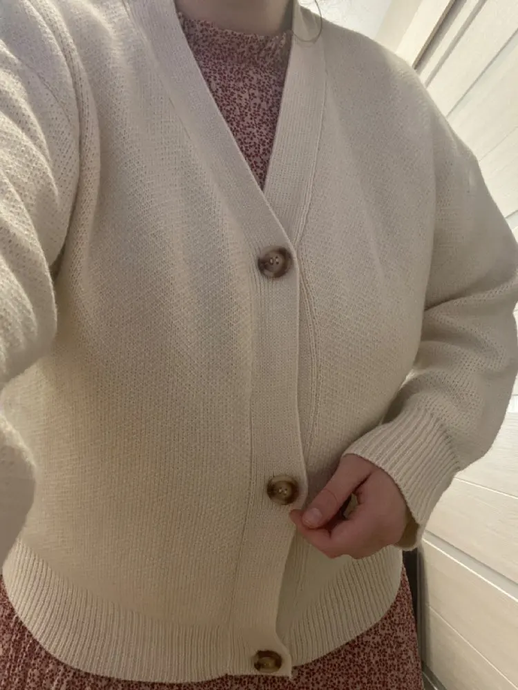 Просто нереально крутой кардиган! Очень долго искала на свои объемы чтобы было свободно. Мои параметры 110-89-110, кардиган подошёл идеально! Свободный как в груди таки и в бёдрах, длина рукава на рост 164 см то что нужно! Даже можно подогнуть немного, на подобии примера модели на фото у продавца. Цвет беж очень приятный, молочный. Сам материал наимягчайший, прям хочется жмякать:) Пошив отменного качества, нигде ниче не торчит, пуговки хороши пришиты, пластмасса не дешевая. В подарок продавец положил маленькую резиночку и открытку со словами благодарности. Посылку очень быстро отправили, в город Волгоград пришла через 7 дней. Всем очень и очень довольна, от самого товара до сервиса магазина! Спасибо огромное! Позже дополню отзыв фотографиями!