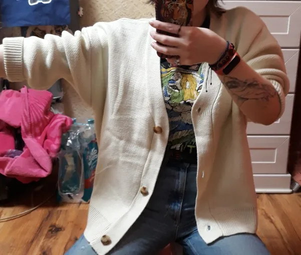 Все в порядке, не так, как на фотографии продавца, но знаю, почему смотреть согласно вашим истинным отзывам, в любом случае Кардиган хороший, спасибо
