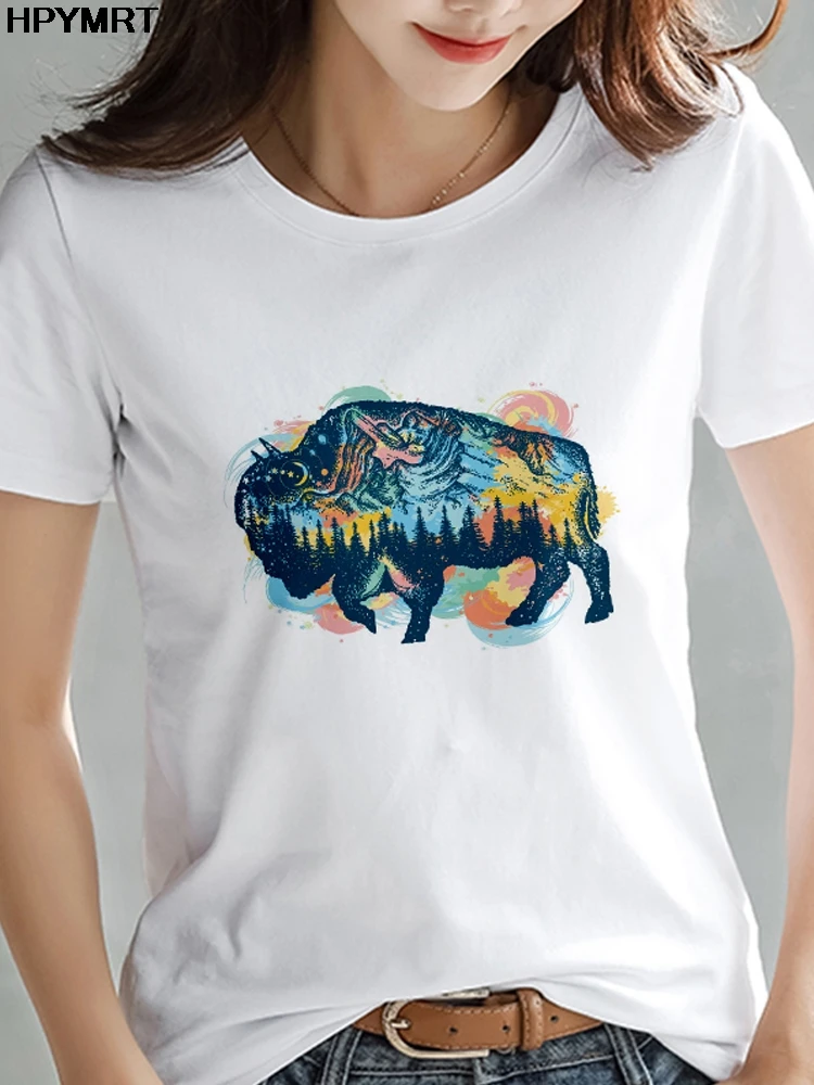 Harajuku футболка женская Эстетическая Футболка с принтом носорога Новая летняя футболка Женские футболки одежда Забавные футболки с графикой животных