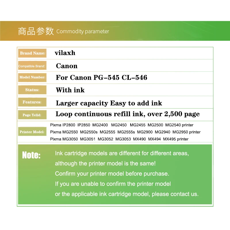 Перезаправляемый картридж vilaxh PG-545 CL-546 PG 545 для Canon PG545 CL546 Pixma IP2850 MG2450 MG2455 MG2550 MG2950 MX495