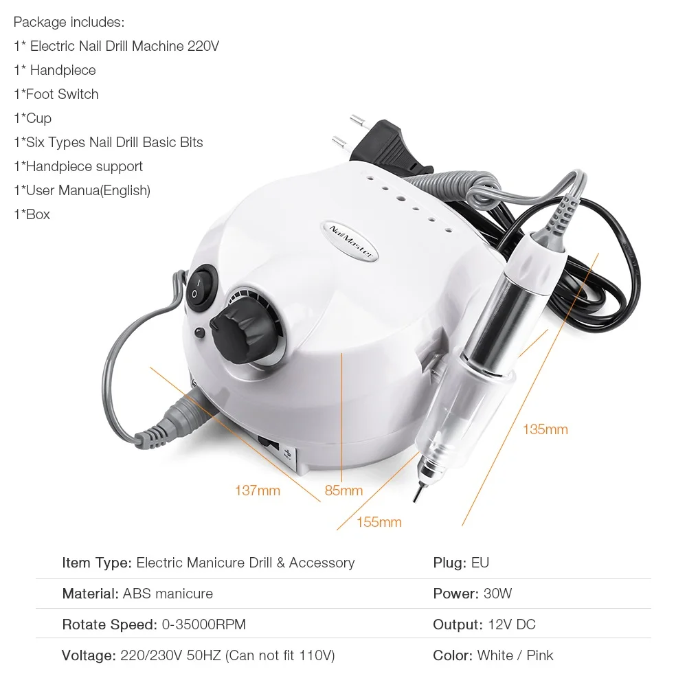 Фрезер Электрический Профессиональный 35000 обмин с 6 шлифовальными машинками, маникюрные наконечники для педикюра, инструменты для удаления геля, полировки ногтей