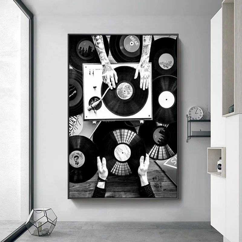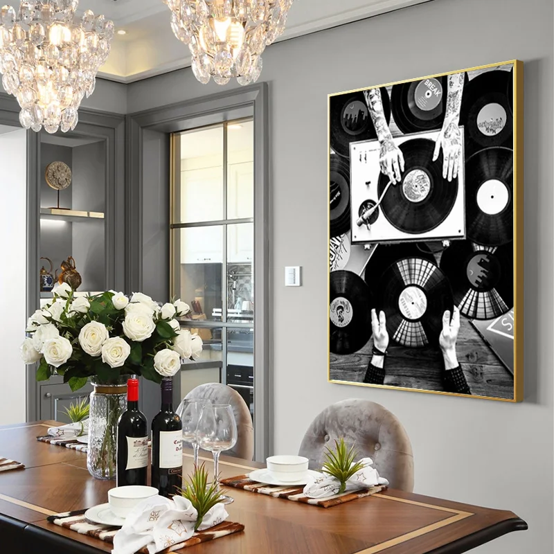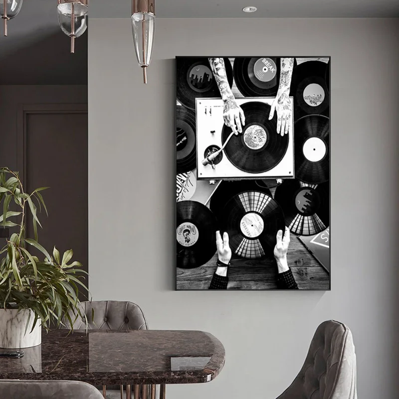 Виниловые пластинки, настенные картины, черно-белые винтажные музыкальные плакаты и принты, настенные картины для гостиной, домашний декор