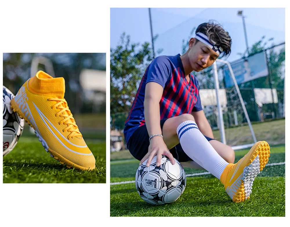 Мужские детские футбольные бутсы газон футбольная обувь шипованные тренировочные высокие кроссовки Качественные Спортивные кроссовки AG TF для помещений 2021 новый размер 35-45