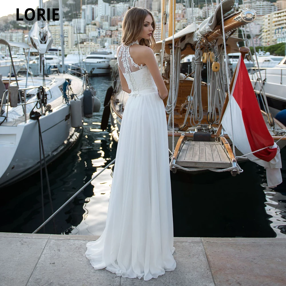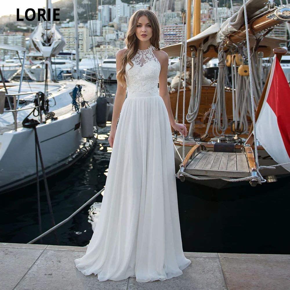 Шифоновые пляжные свадебные платья LORIE, женское платье невесты с лямкой на шее, вечерние платья принцессы в стиле бохо со шнуровкой, 2020