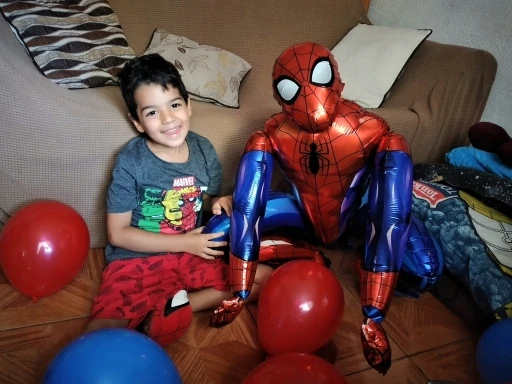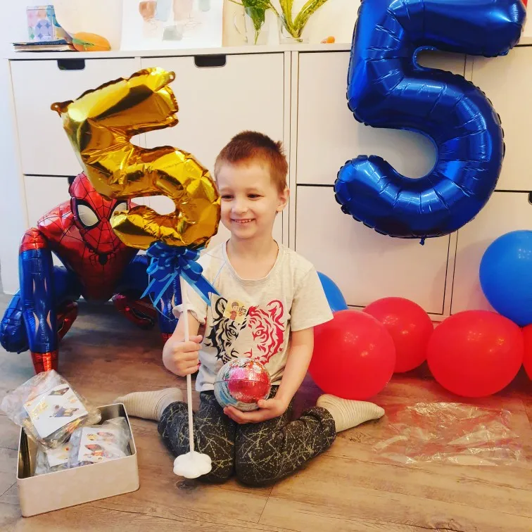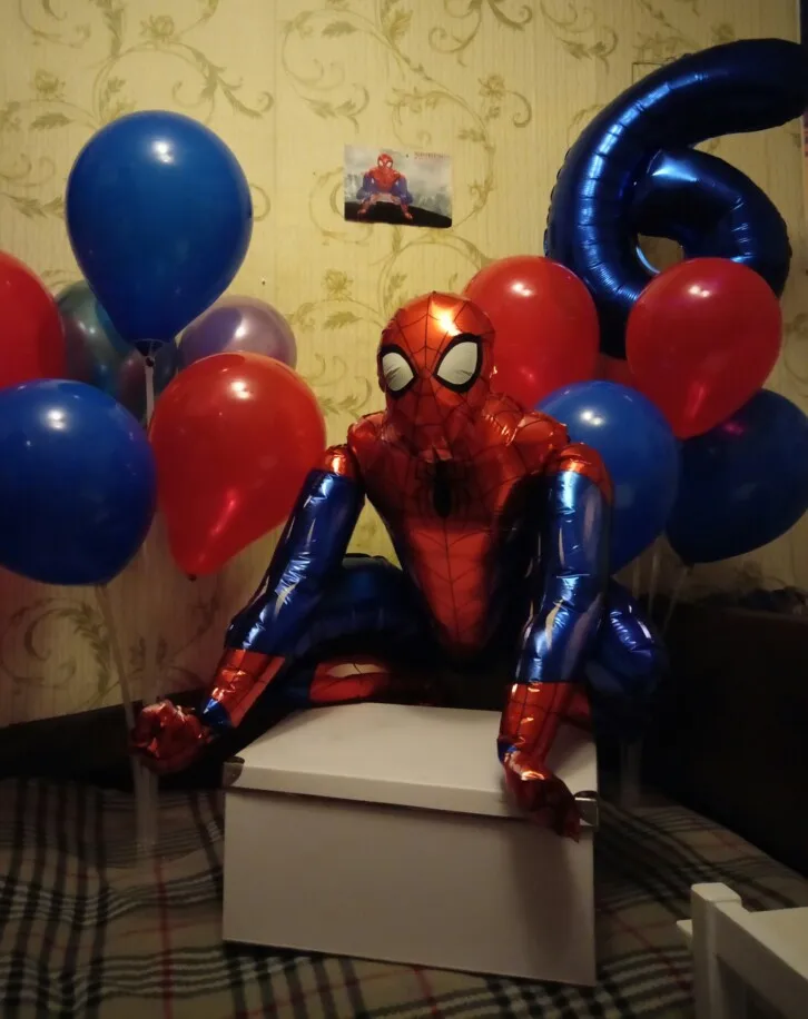 пришло быстро,человек паук,10 шаров и цыфра 6 ,спасибо