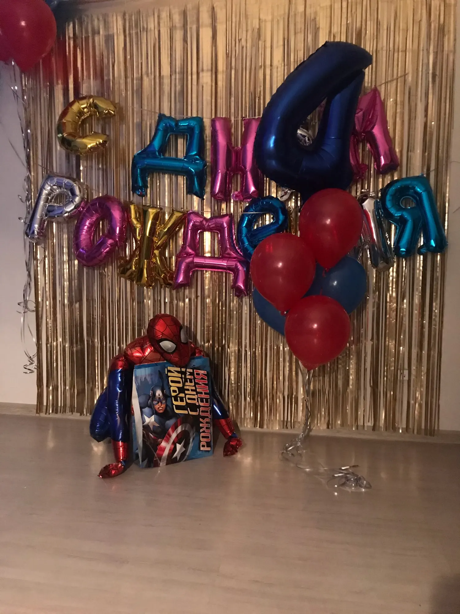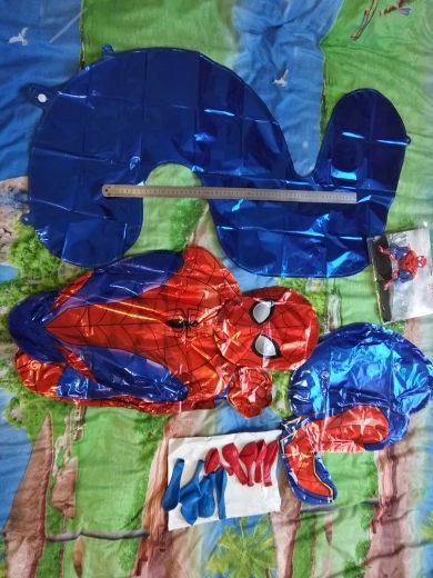 Шары. Пришли очень клевые. Пока не надували. Все как на фото. Цифра большая. Человек паук тоже большой. Быстрая доставка. Рекомендую