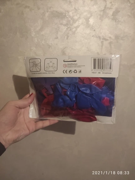 Заказала 4 января, получила в отделении почты в Москве 17 января. Надувать планируется только через два месяца (кто ж знал, что так быстро приедет ). Пять красных шаров, пять синих, огромная цифра 3 и Человек-паук, разделенный по частям тела. Надо ещё разобраться, как его собирать. Ещё в комплекте одна небольшая тонкая трубочка. Пока не знаю, для чего она. Человек-паук немного помятый, но надеюсь, что после надувания, он разгладится.