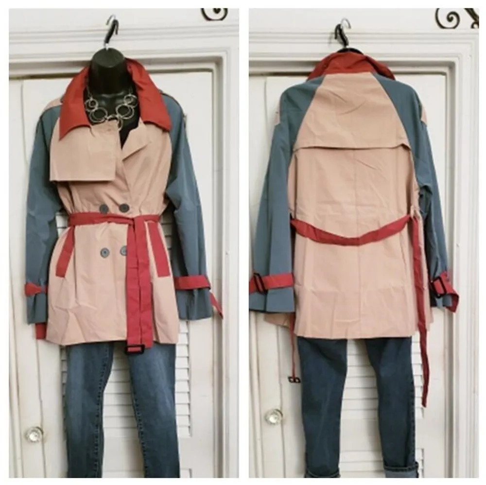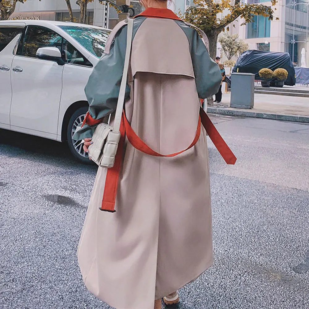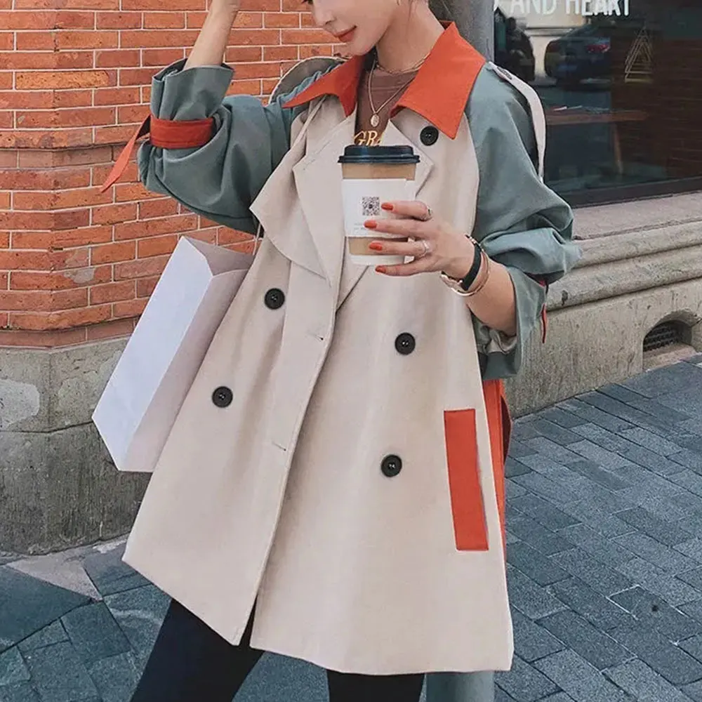 Женская ветровка большого размера, Женская ветровка средней длины в британском стиле, Новинка осени 2020, женское приталенное пальто контрастных цветов