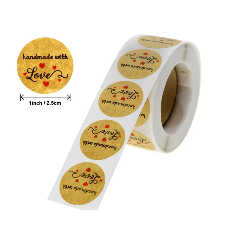 500 шт.упак. рулон ручной работы с любовью этикетки на день рождение, самоклеющаяся этикетка для упаковки крафт-бумага глянцевые наклейки с фокусным расстоянием 25 мм