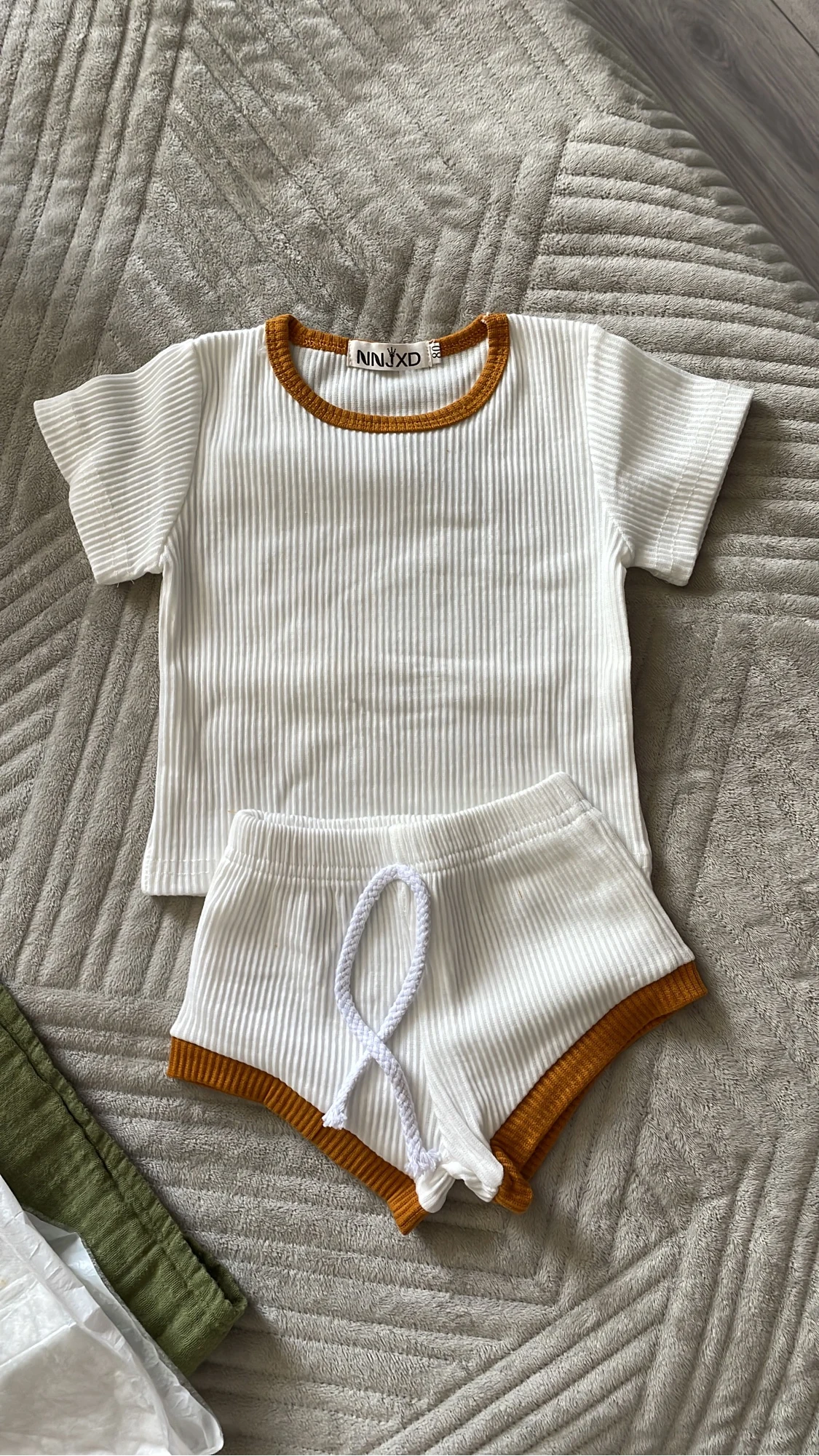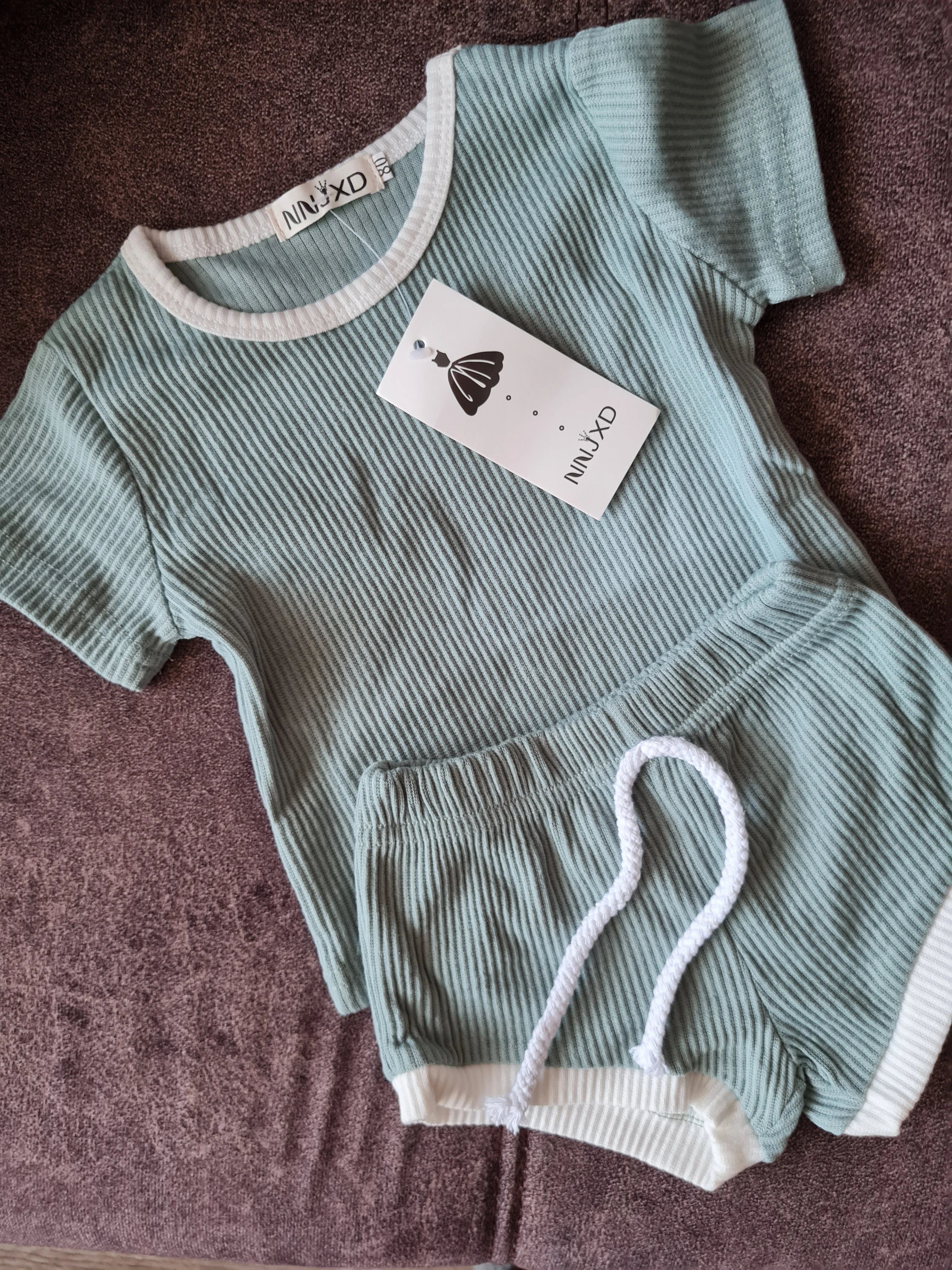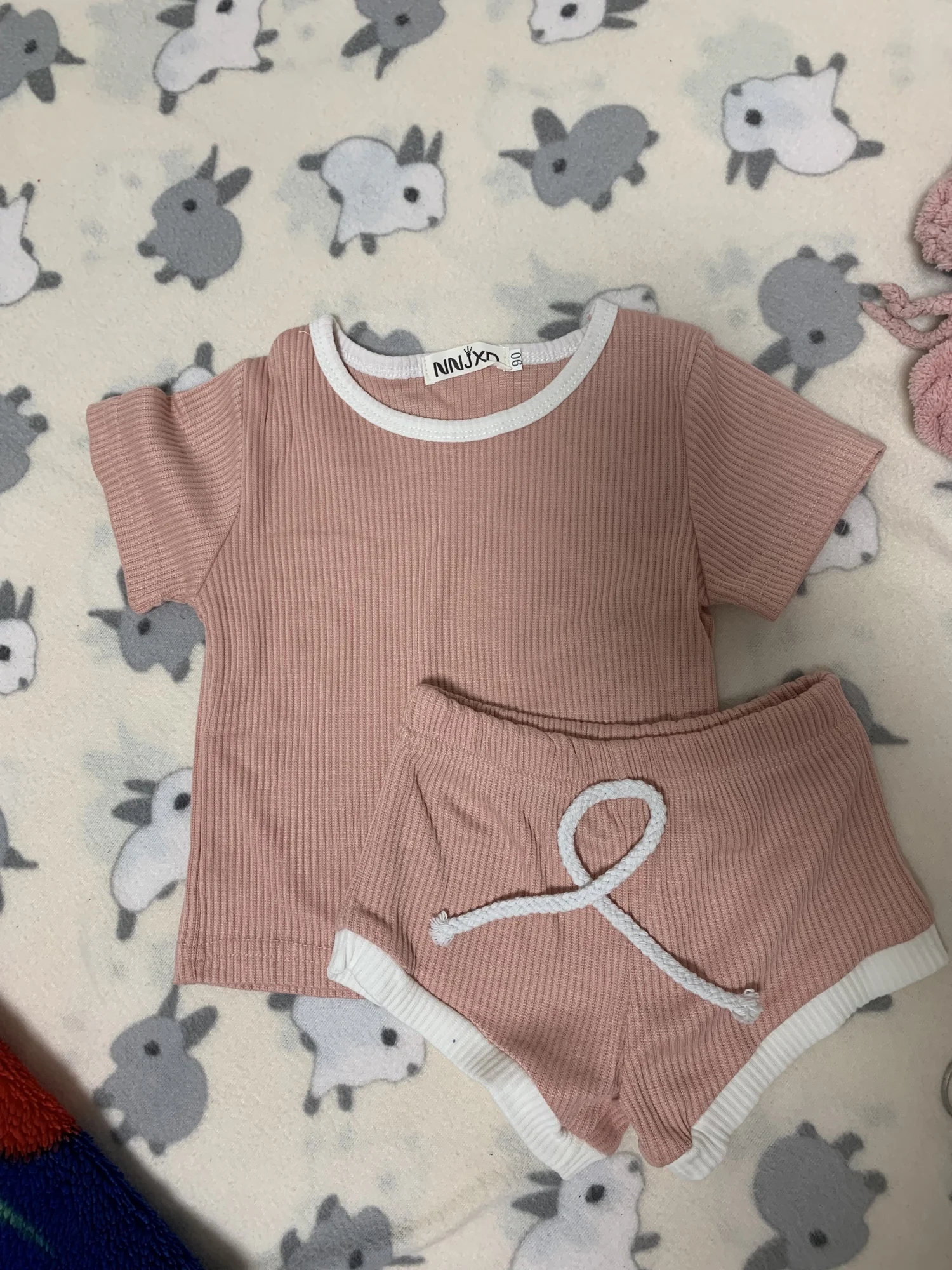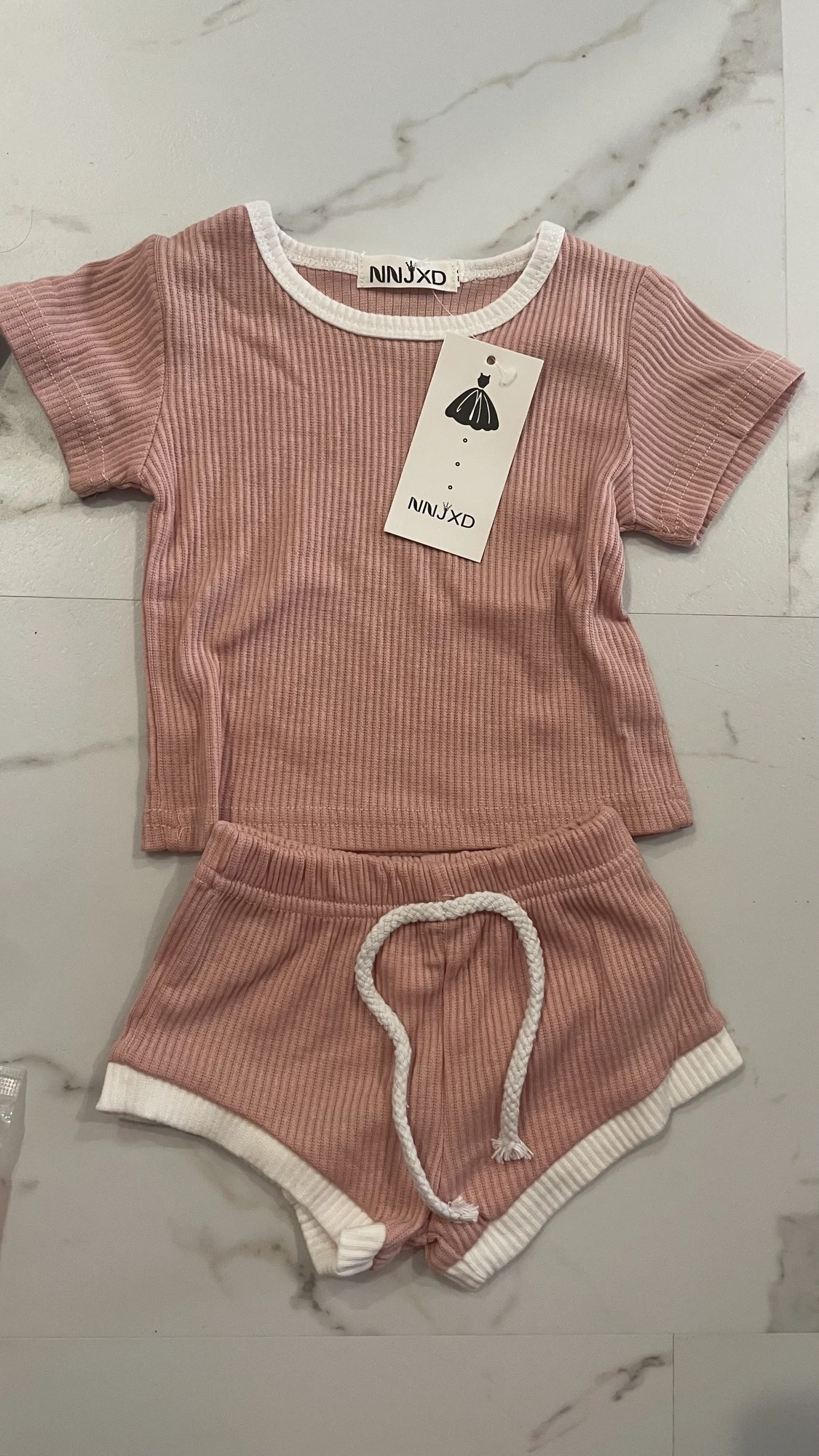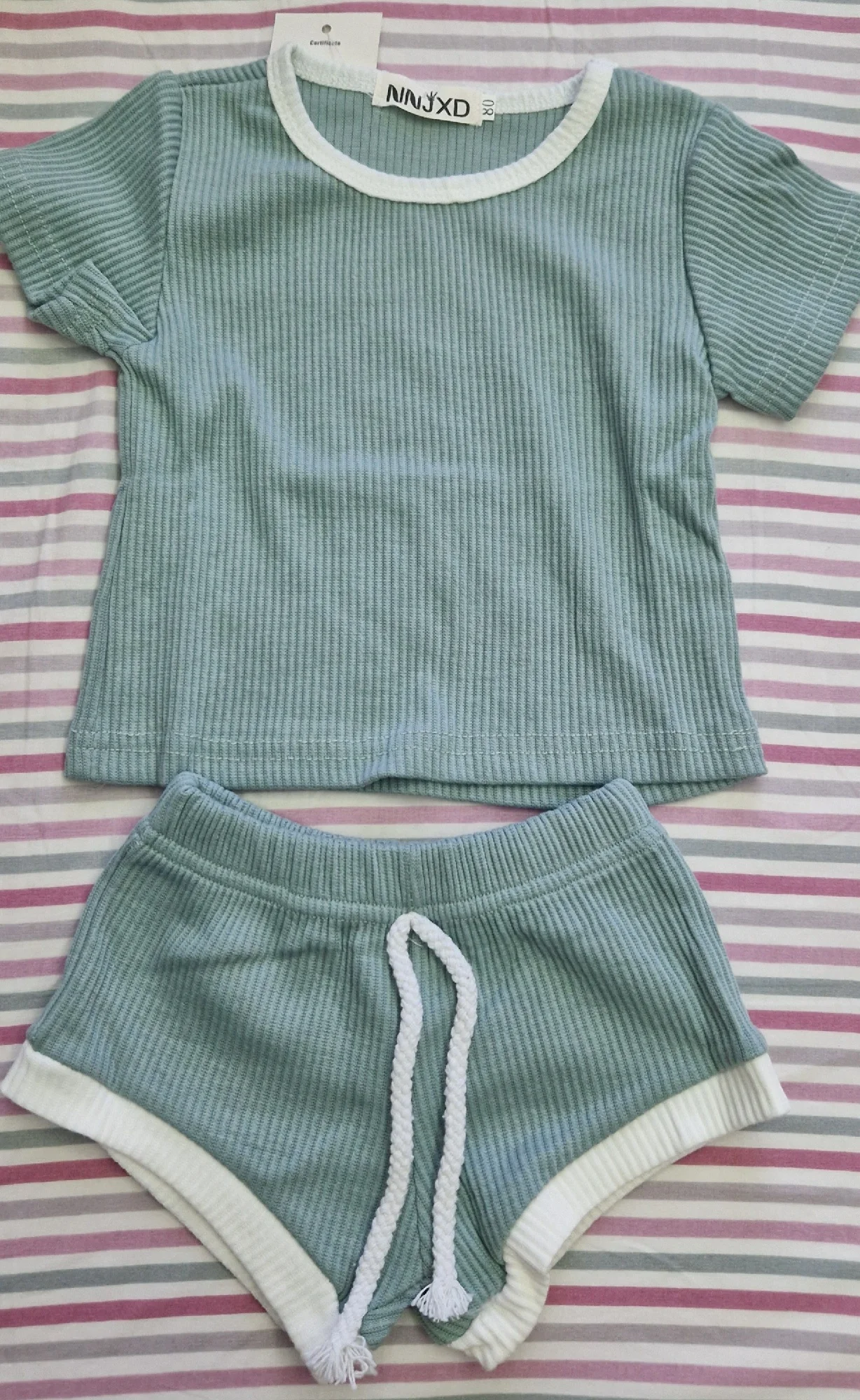 Одежда для новорожденных мальчиков и девочек повседневные хлопковые топы с короткими рукавами, футболка + шорты трикотажный спортивный костюм в рубчик комплект одежды для малышей