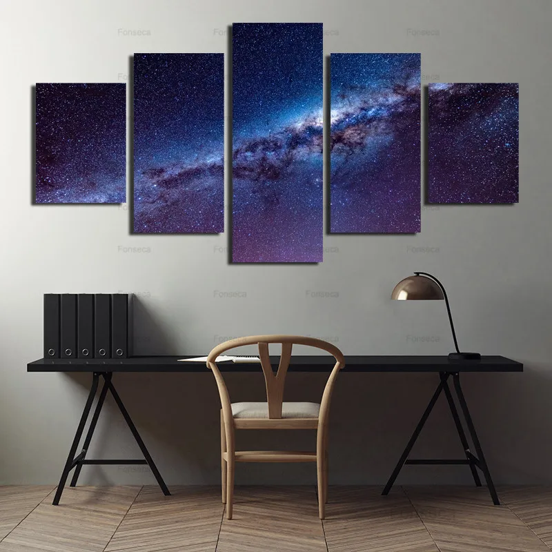 Модульная картина, настенное искусство, украшение для дома, 5 панелей, пейзаж Галактики, холст, картина маслом для гостиной, Современная печать