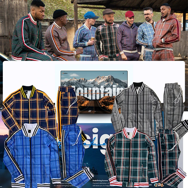 Мужской Клетчатый спортивный костюм с курткой и воротником-стойкой