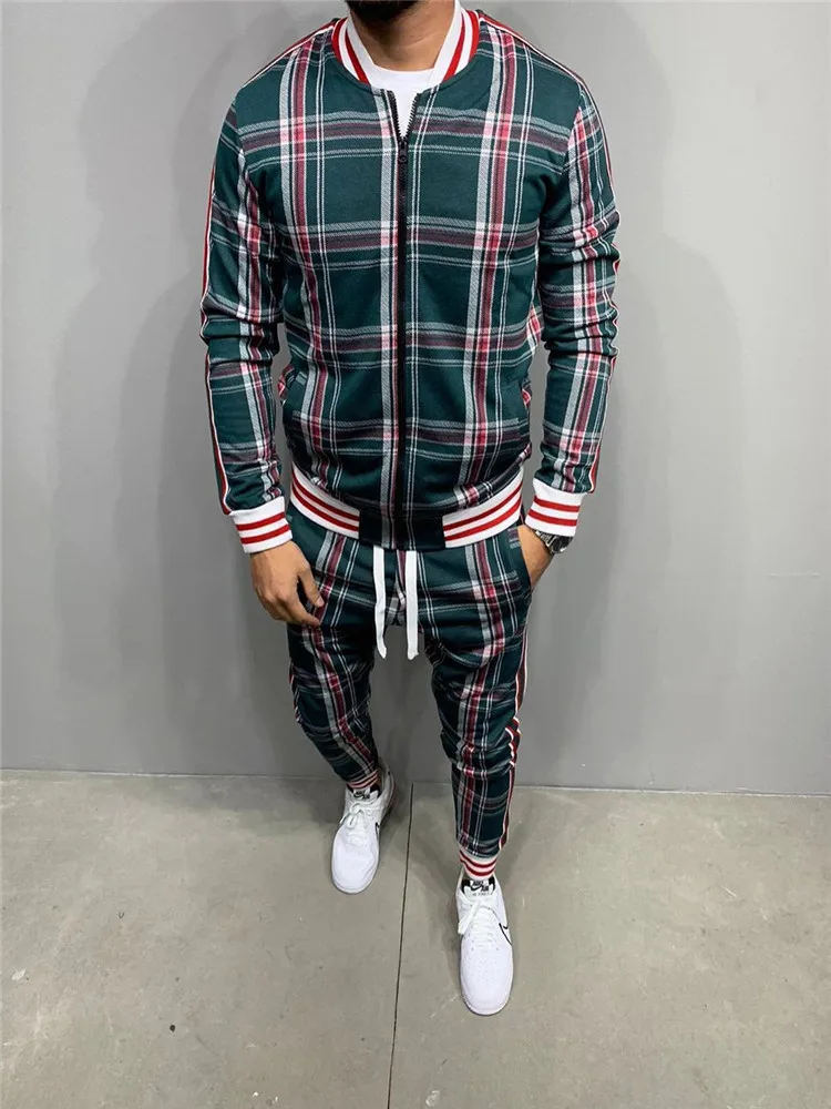 Новые мужские Модный комплект для мужчин спортивная куртка, комплект клетчатой одежды ярких цветов для мужчин на каждый день комплект молнии осенний тренировочный костюм комплект мужской свитер с карманами