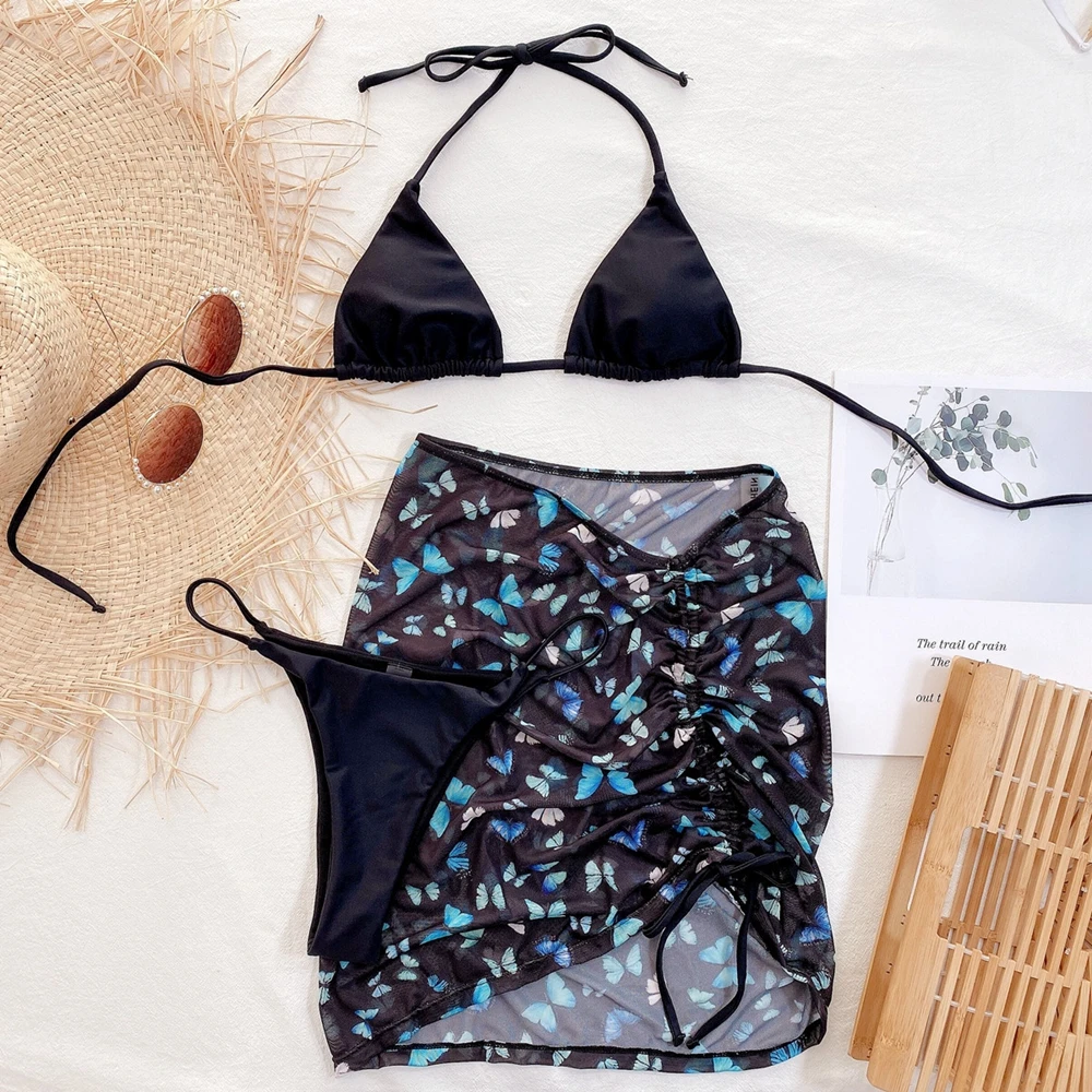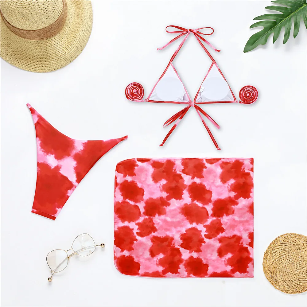 2022 сексуальный комплект бикини из трех предметов, женское бикини с юбкой, купальник, женский купальник с принтом, бикини, купальные костюмы, летняя пляжная одежда
