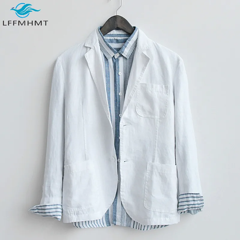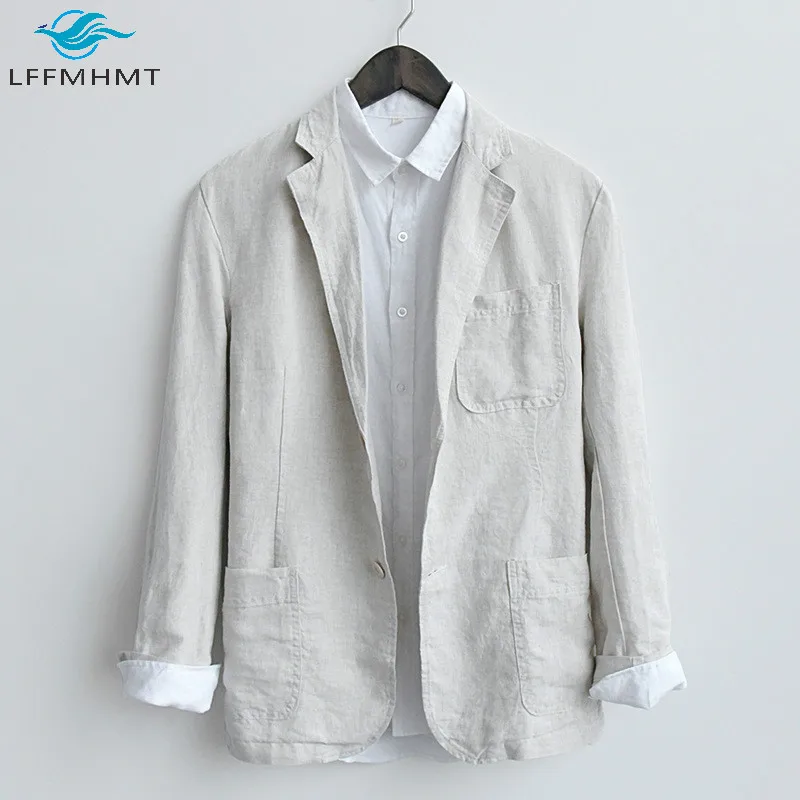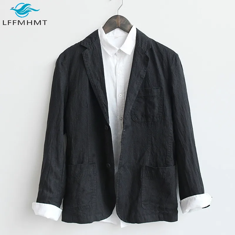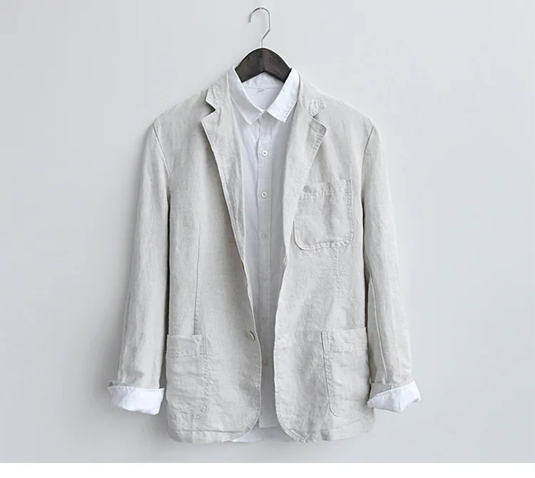Мужской Хлопковый льняной пиджак высокого качества здоровый мягкий удобный деловой Повседневный однотонный жакет в японском стиле ретро Харадзюку