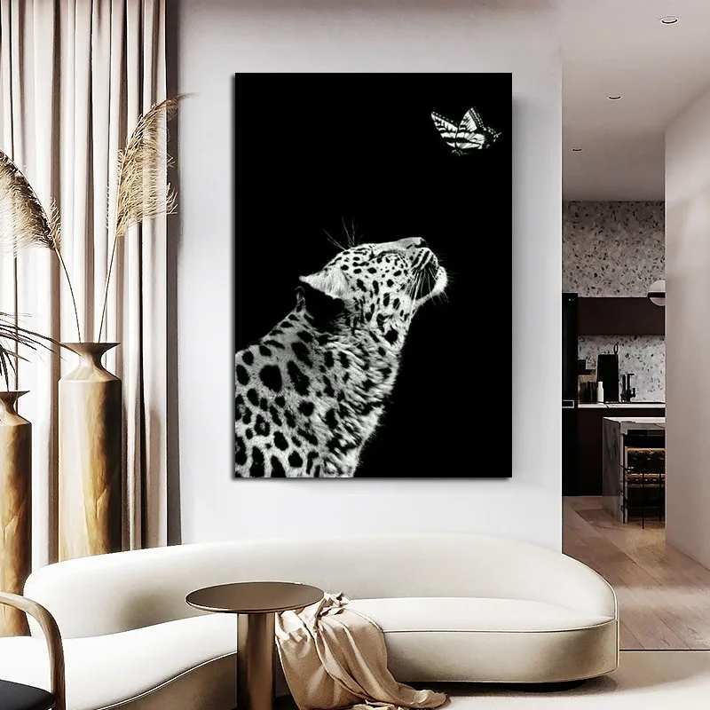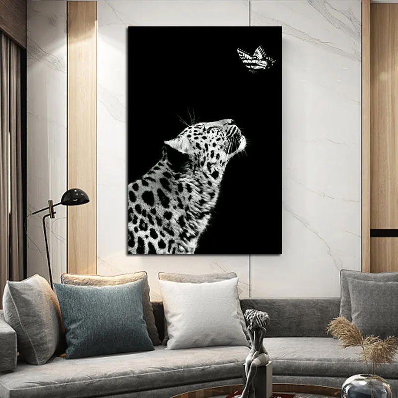 Современный плакат с животными, живопись Черно-белая леопардовая живопись, холст, настенные картины, домашние декоративные картины для гостиной