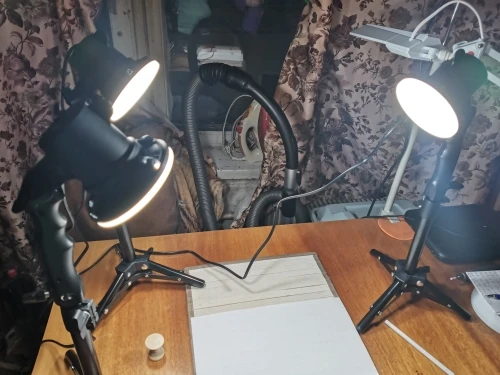 Заказала 22.11, получила 28.11. из Подольска. Никогда раньше не получала так быстро. Лампы работают, отгибаются. Штативы раскладываются. на одной лампе было загрязнение, которое легко стёрлось тряпкой. Запаха нет. У каждой лампы свой шнур питания, переключатель. На штативы ещё не устанавливала. Все детали без повреждений и царапин. Продавца и товар рекомендую!
