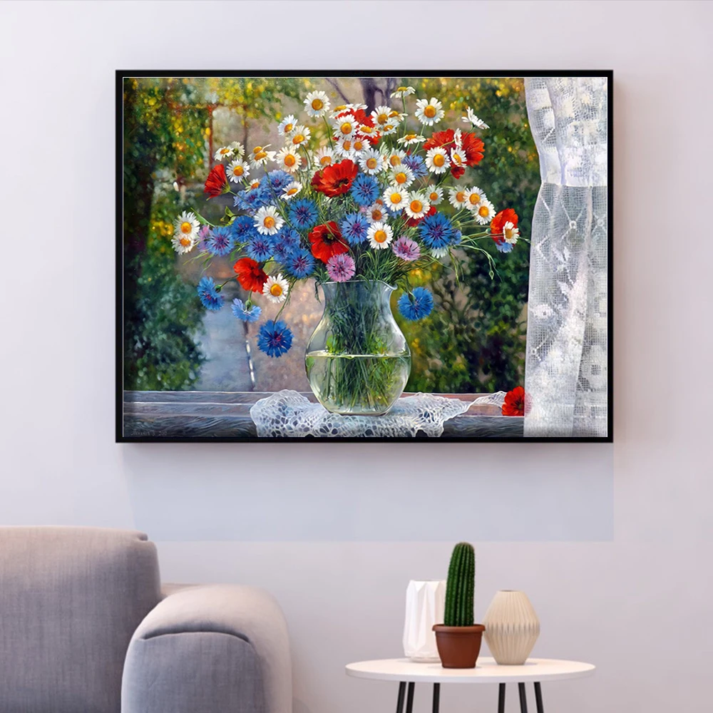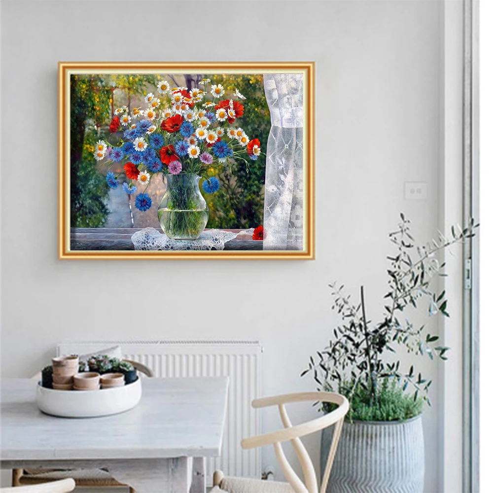 HUACAN вышивка крестиком цветок в вазе хлопковая нить для рисования DIY рукоделие Наборы 14CT украшение для дома