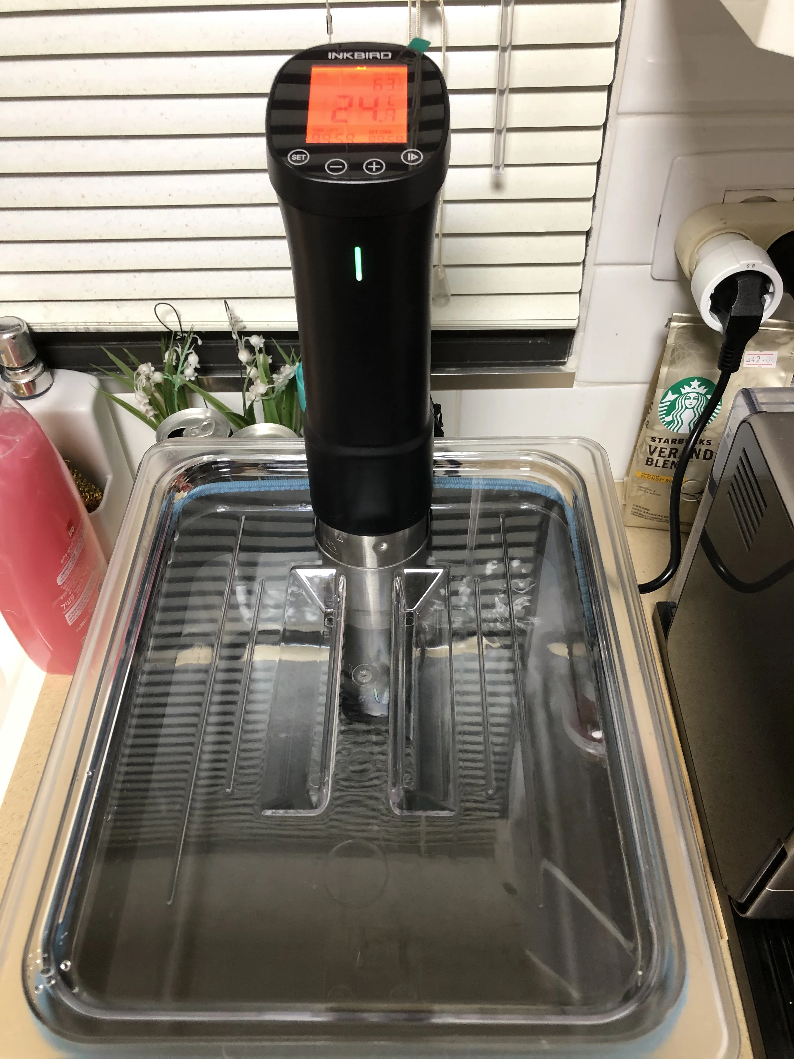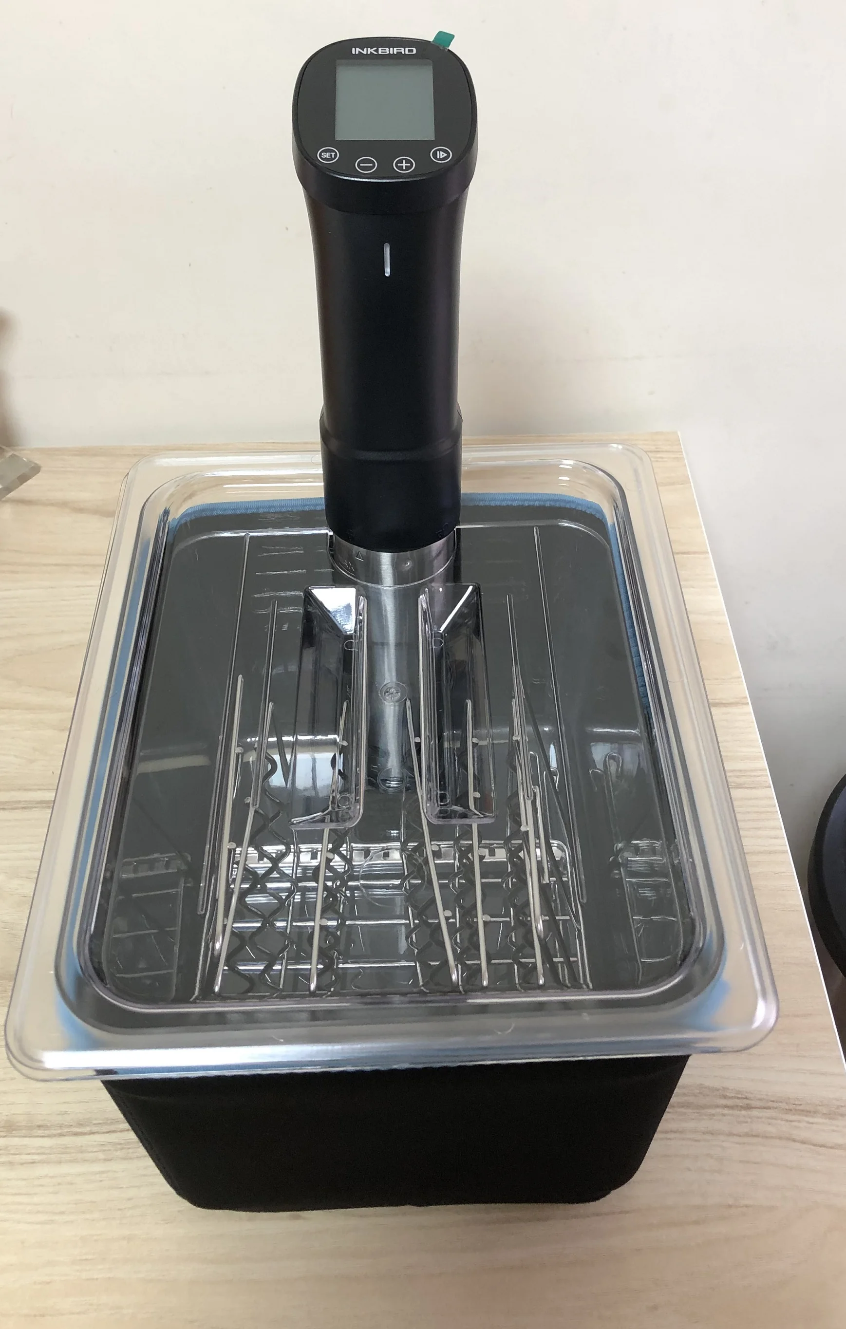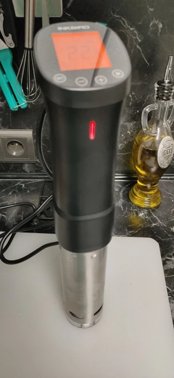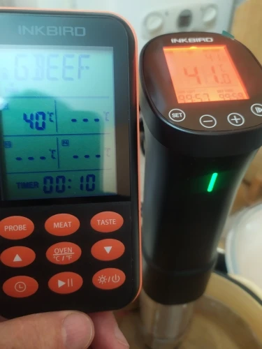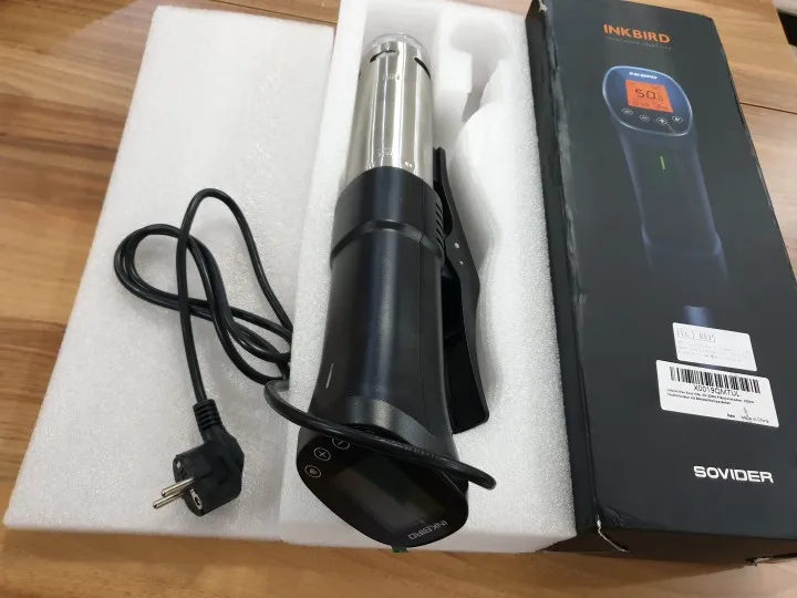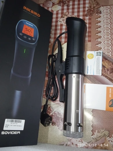 You Tube обзор(картинка видео закреплена ниже) на канале РасПакет смотрите под названием:"Су-Вид Inkbird ISV-200W Приготовление пищи по методу Su-Vide Тренд 2022 года! Распаковка АлиЭкспресс" Обязательно попробуйте мяско, приготовленное в Су-Вид, уверяю вас, такого вкусового оргазма вы никогда не ощущали! Модель ISV-200W позволяет устанавливать температуру приготовления до 90 градусов по Цельсию и время до 100часов. Эта малышка довольно прожорлива и на максимальном потреблении кушает целый киловатт энергии. Минимальный интервал установки времени составляет 1 минуту. Сборка: тэн с турбиной, которая равномерно прогоняет всю воду по сосуду, обеспечивая равномерный прогрев. Тэн закрыт кожухом из нержавейки с оттисками минимального и максимального уровней добавления жидкости. Синхронизировать со смартфоном можно только через 2,4ГГц WiFi сеть. Приложение InkBird Pro позволит выставить со смартфона необходимые параметры приготовления а также подаст звуковой сигнал по готовности!