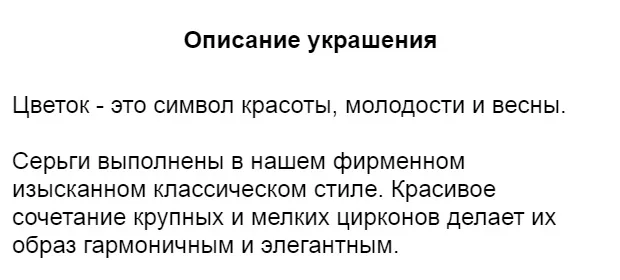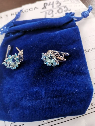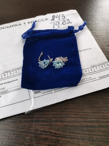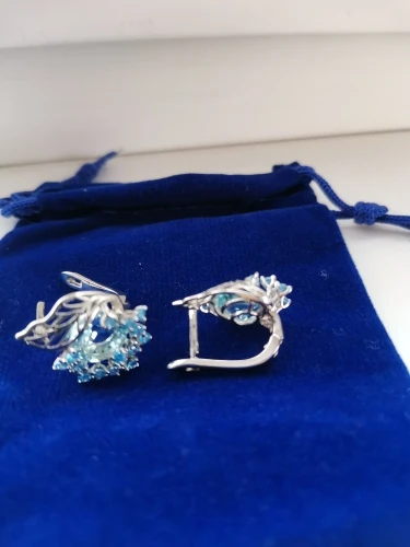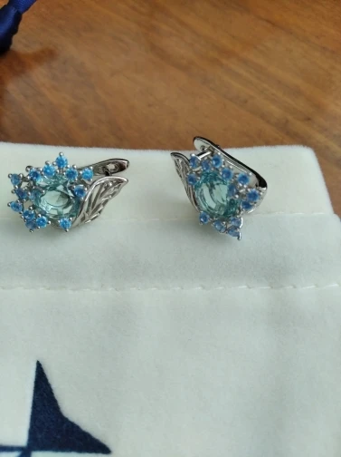 Нет слов - одни положительные эмоции. Серьги прекрасны, даже сверх ожидаемого. Смотрятся очень нежно и, в то же время, "дорого". Камешки смотрятся как топазы, а металл - как серебро. Рекомендую. Очень быстро получила курьерской доставкой до квартиры. Большое спасибо продавцу.