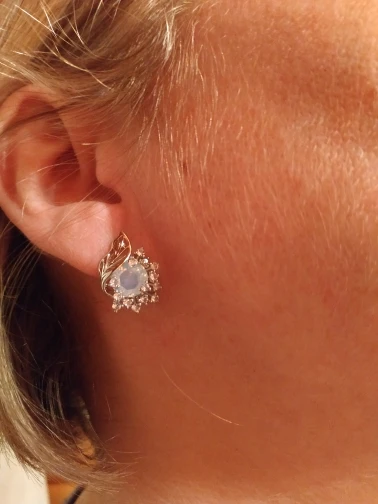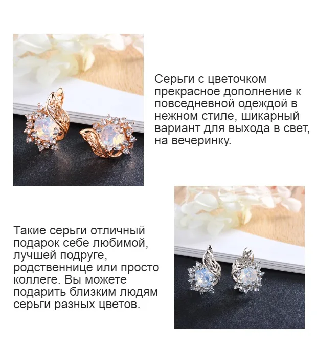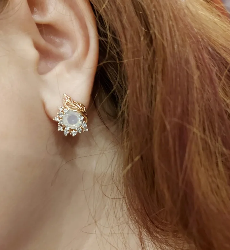 Милые маленькие серьги как на каждый день, так и на выход с красивыми цирконами цвета аврора бореалис с молочным оттенком. Качество камней и металла в этом магазине всегда самое лучшее, гипоалергенное, и при аккуратном отношении к бижутерии прослужит вам долгие годы. Спасибо, любимый магазин за такую красоту.
