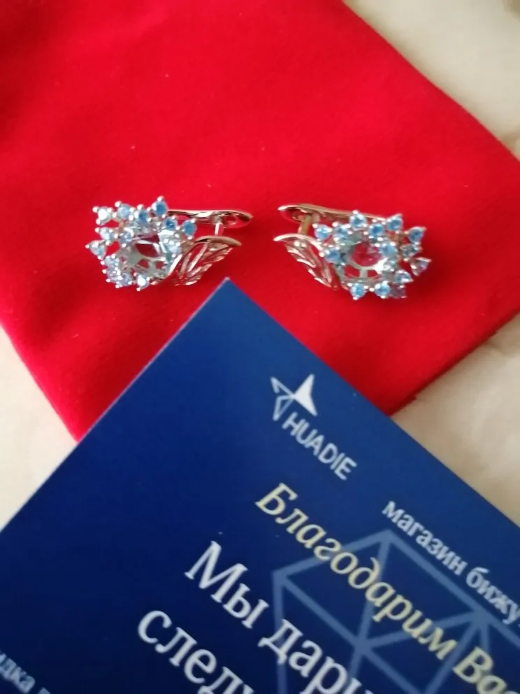 Очень красивые серёжки, аккуратно смотря на ушке, качество отличное, в общем бомбические! Доставка быстрая, до Кемеровской области добрались за 7 дней. Рекомендую.