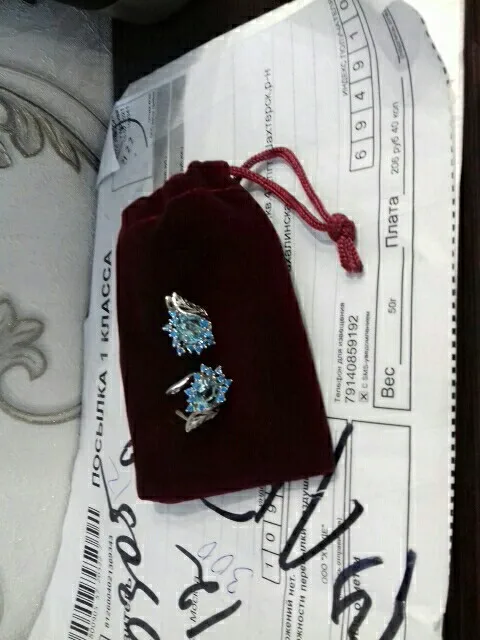 Продавец супер! Спасибо большое дорогие мои! Товар прибыл на пятый день! Упаковка хорошая, отправка быстрая, отправил 1ым классом. Серьги супер, из твердого металла, и очень красивые! Я хотела бы купить весь комплект этого изделия, такого небесно голубого.